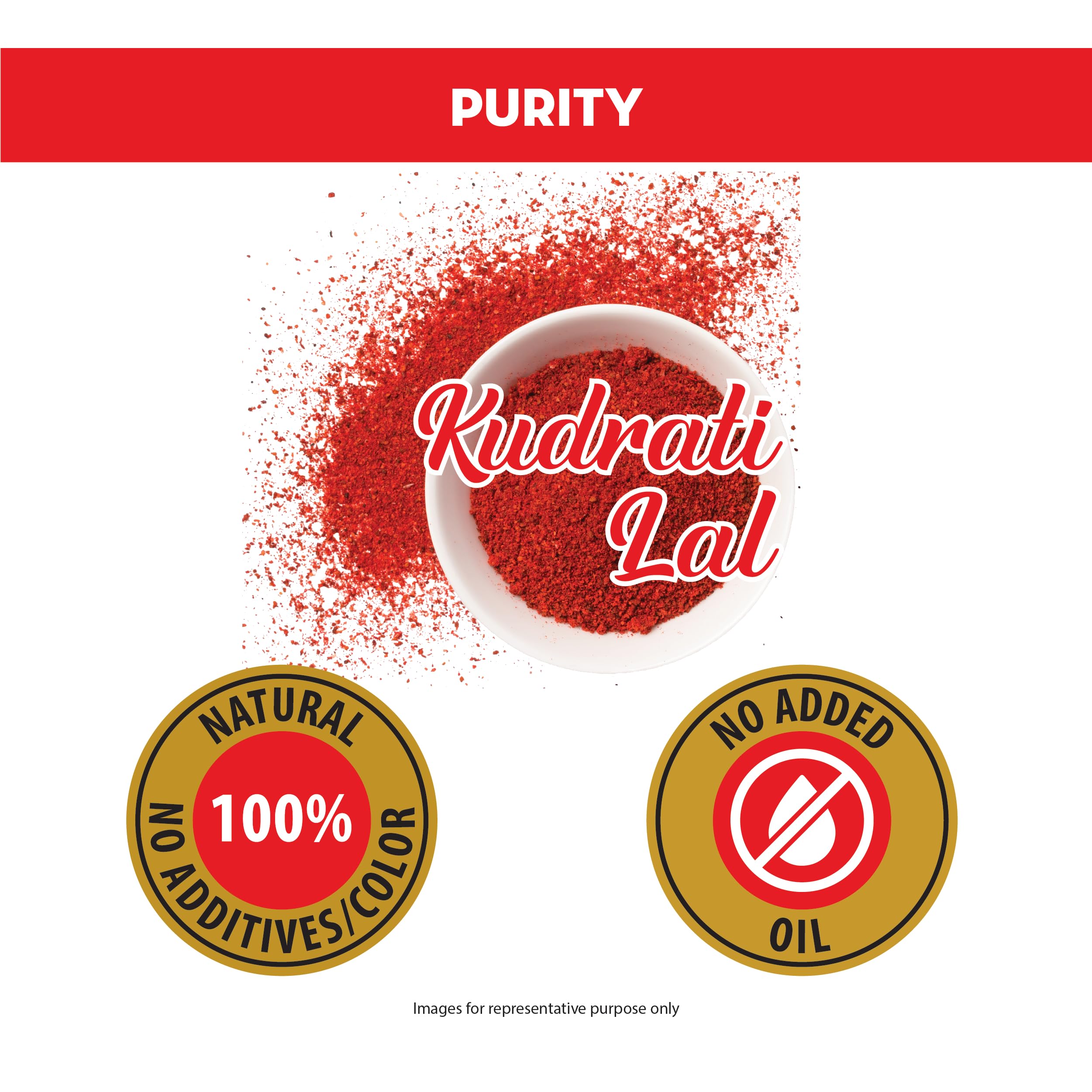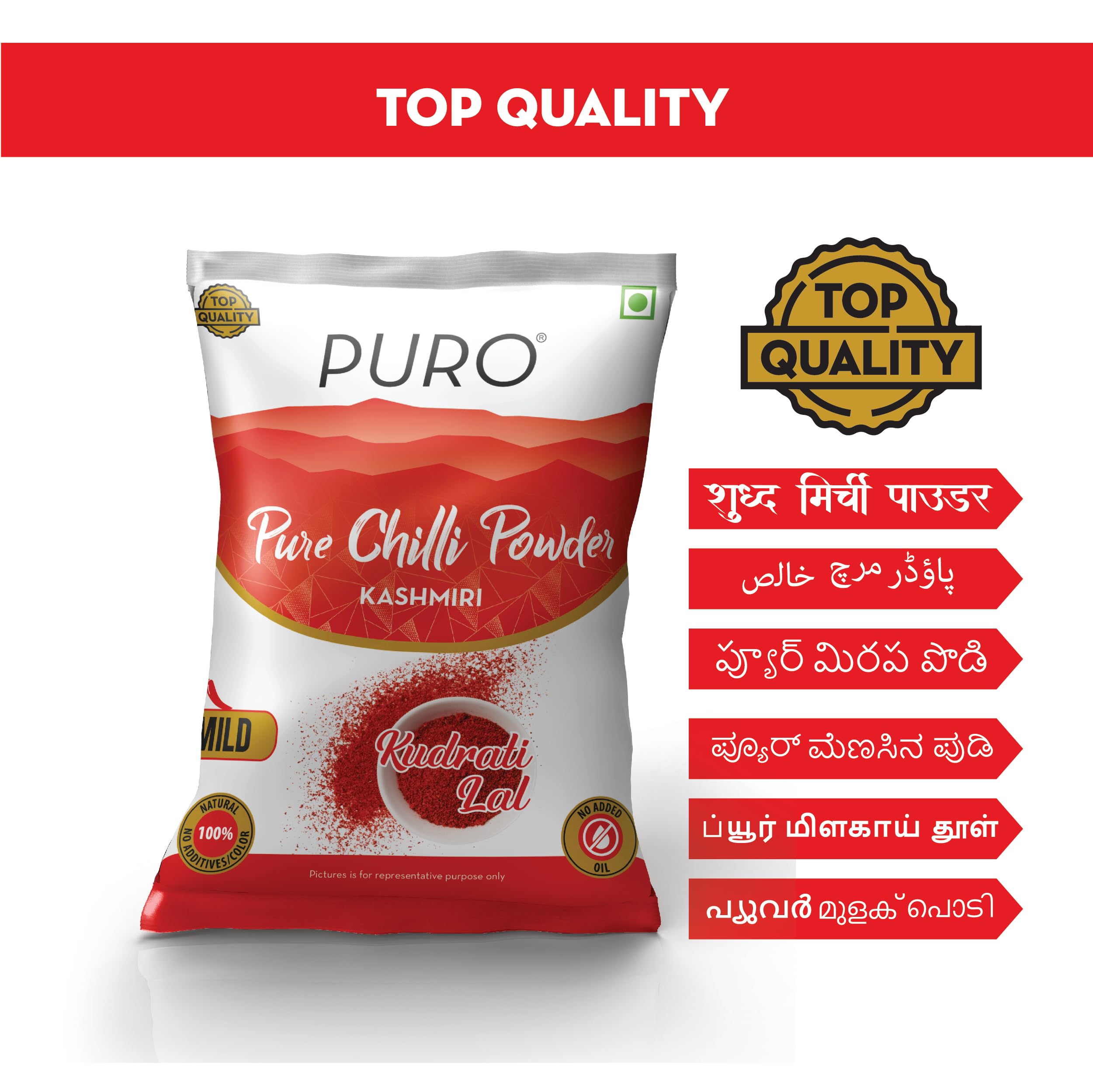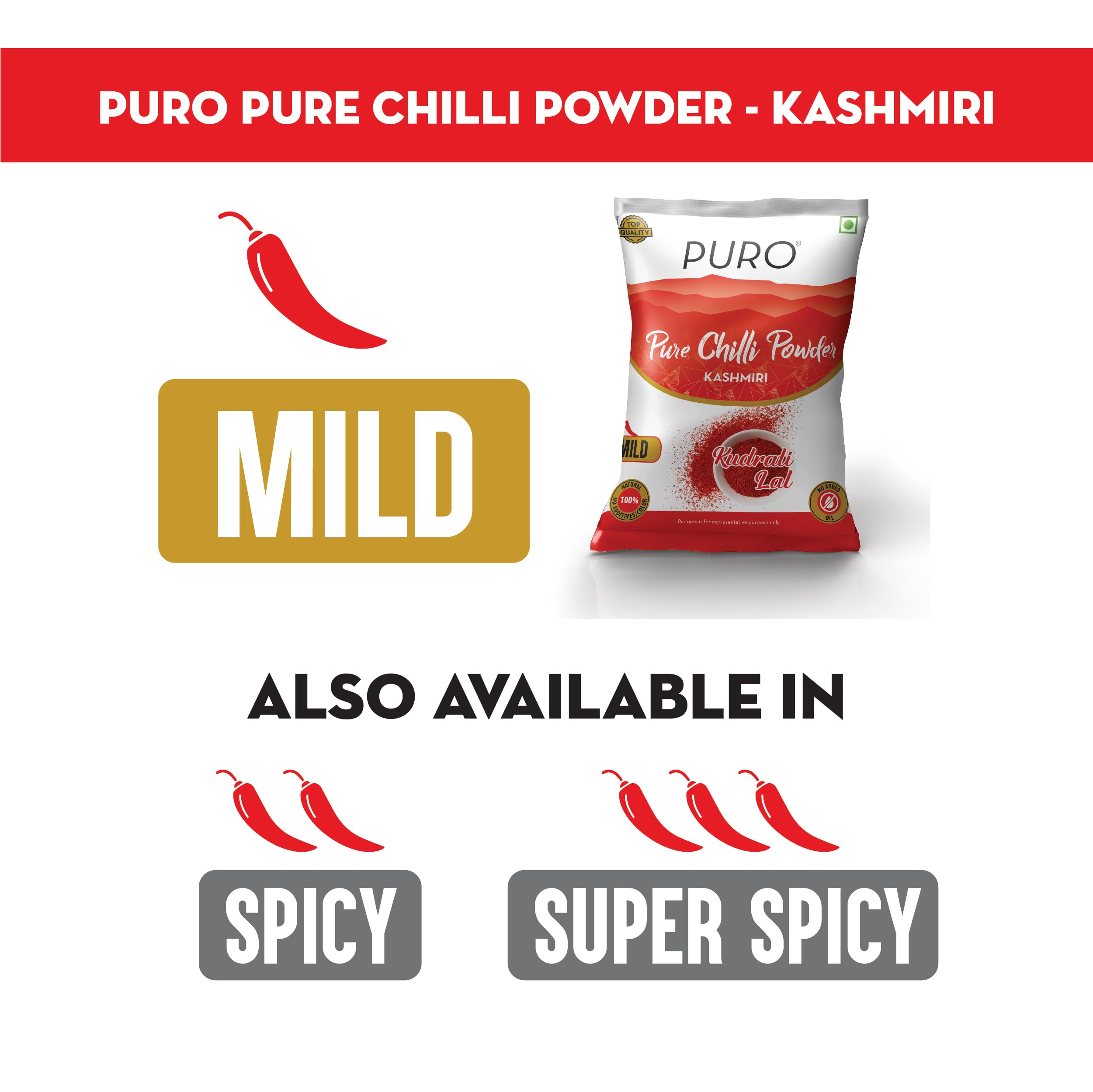 Puro Pure chilli powder gets it's royal red colour due to naturally high capsanthin component in it while keeping the pungency mild.