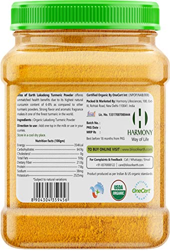 Bliss of Earth Certified Organic Dried Ginger PowderCinnamon Powder and Turmeric Powder for Cooking & Drinking Pack of 3 (500gm Each)