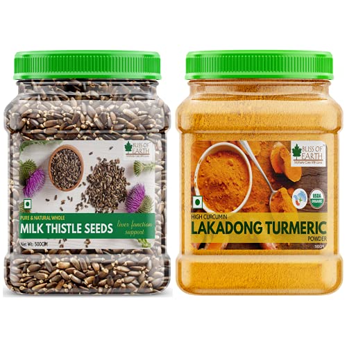 Bliss of Earth Milk thistle seeds are used as herbal remedy derived from the milk thistle plant also known as Silybum marianum. The active ingredients silymarin extracted from milk thistle is known to have antioxidant antiviral and anti-inflammatory properties. Bliss of Earth Organic Lakadong Turmeric Powder Bliss of Earth Lakadong Turmeric Powder is an organic versatile herb known for centuries for its health benefits. It offers an unmatched health benefits due to its highest natural curcumin content of 6-8% as compared to other turmeric powders. Grown in the hills of the Lakadong Village in Meghalaya Iindia this turmeric powder not only has a rich colour but also an intense flavour. It also has an aromatic fragrance that shows well when used in curries. Its natural flavor makes a perfect addition to your favourite curries vegetables or milk.