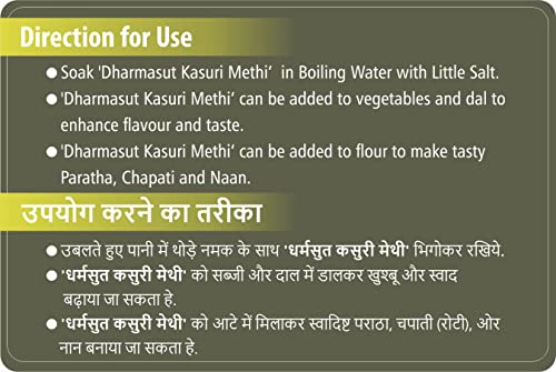 Kasuri Methi refers to a dried leaves of a Fenugreek plant. Kasuri methi leaves is an herb with a bitter but addictive taste. This kasoori methi powder is used as spice in Indian curries sabzi parathas. Kasuri methi gives your dish a distinctive aroma and a delicious taste. Dharmasut Kasuri Methi comes from the best farms in India so you can enjoy this Indian spice to enhance the flavor of your dishes.Dried Fenugreek leaves contain various vitamins minerals and plant compounds that have been shown to improve health in many ways. It adds a fragrant flavor to your food like Dal various Sabjis and you can also make methi paratha naan kulcha mathri khakra papad etc.