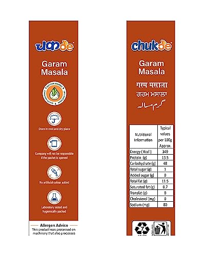 Introducing Chukde's Garam Masala Powder a blend of ground spices that will take your cooking to the next level. Made with the ingredients including cumin black pepper coriander bay leaves fenugreek leaves dry ginger kassia bark (taj) big cardamom seeds clove nutmeg kachri and black cumin this garam masala powder is a must-have in your kitchen. Garam masala is a traditional blend of spices commonly used in Indian Pakistani and other South Asian cuisines. The exact blend and proportions of spices used can vary depending on the region and the recipe. Garam masala is typically ed to dishes near the end of cooking or used as a finishing spice and it can warmth depth and complexity of flavor to a wide variety of dishes. Chukde's Garam Masala Powder has many features that make it stand out from the rest. It is laboratory tested and hygienically packed ensuring that you receive only the product. The packaging is designed to keep the product fresh so you can enjoy the rich flavors and aromas for longer. This garam masala powder contains no artificial colors or itives making it a healthy and natural choice for your cooking needs. When it comes to storing the product simply keep it in a cool and dry place to ensure that it stays fresh for longer. Whether you are a professional chef or a home cook Chukde's Garam Masala Powder is a versatile ingredient that can be used in a wide range of dishes including curries biryanis and kebabs. It s a and delicious flavor to your dishes making them stand out and leaving your guests asking for more. In conclusion if you want to take your cooking to the next level look no further than Chukde's Garam Masala Powder So why wait? it to your cart now and start cooking up a storm