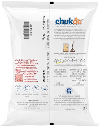 Chukde Sendha Namak Salt Powder 600g Pack of 200g x 3
