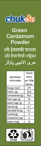 • Use: Chuk De Green Cardamom Powder is one of the indispensable ingredients in Garam Masala spice mixture. It is largely used in savory dishes like curries stews and lentils flavorful desserts tea and other beverages