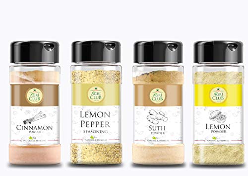 Agri Club Big Range of Kitchen Spices Pack of 4 (Lemon Powder50gmDryinger Powder100gmLemon Pepper Powder 50gmCinnamon Powder100gm)