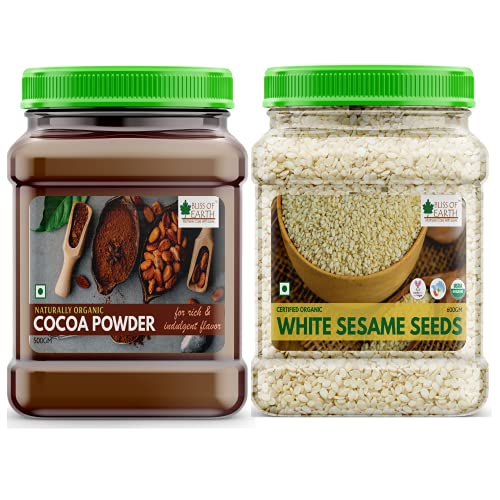 Bliss of Earth Naturally Organic Cocoa Powder is the perfect companion to any health concious kitchen. From holiday desserts and everyday baking to a steaming cup of cocoa on those chilli mornigs our cocoa powder offers a guil-free way to satisfy your sweet tooth without the high amount of sugar fat and preservatives which are commonly available in other mixes. In addition to its rich and indulgent flavor it is non-alkalinized and also has naturally occuring cocoa flavonols (polyphenols). Bliss of Earth White Sesame seed are dehulled and are an excellent source of coppercalciumomega fatty acidsiron magnesiumphosphorus zinc and selenium. Sesame seeds are also a good source of fiber with a rich nutty flavour. Called the queen of oil seeds these tiny seeds are a go to topping on breadstick and burger buns.