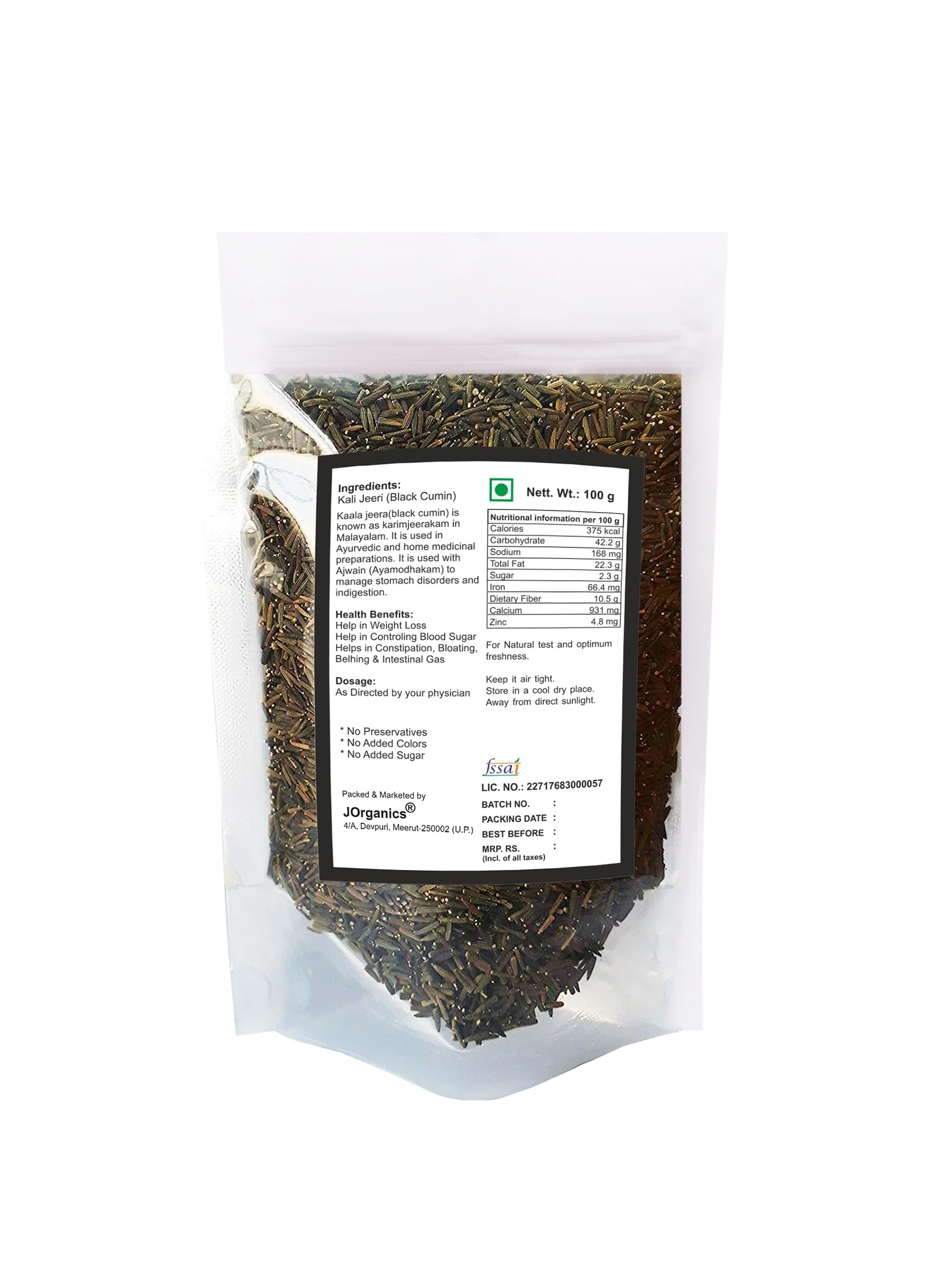 JOrganics Kali Jeeri Kali Jiri Kadwa Kaali Jeera 100g Nalla Jeelakarra Black Cumin Seed Kadvi Bitter Kalo Jeeri