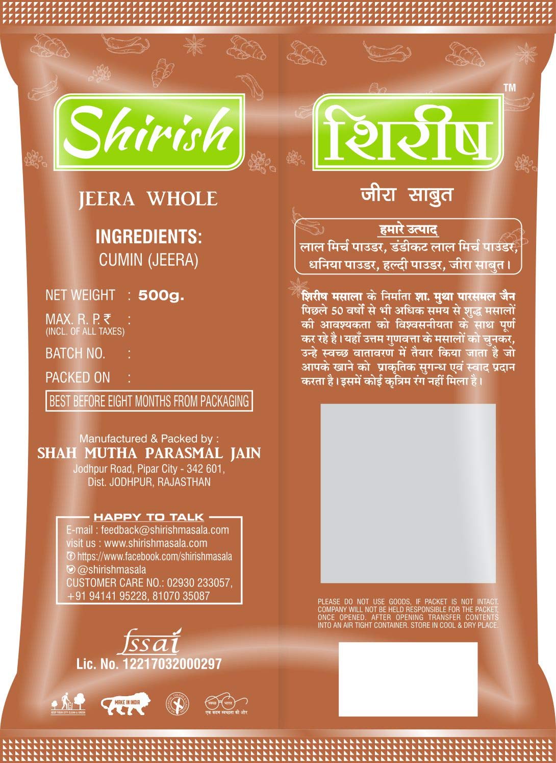 Shirish Masala Jeera Seeds whole spices Cumin seedzeerajira (200 Gram Pack of 1)