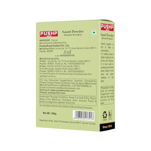 Experience the essence of pure fennel with Pushp Saunf Powder crafted to perfection for aroma flavor and health benefits. Rich in fiber and antioxidants this fennel powder is a versatile kitchen essential ideal for enhancing both your culinary creations and your overall well-being. A staple in Indian cuisine Pushp Saunf Powder can be used in a variety of dishes beverages and desserts offering a refreshing coolness to your body.