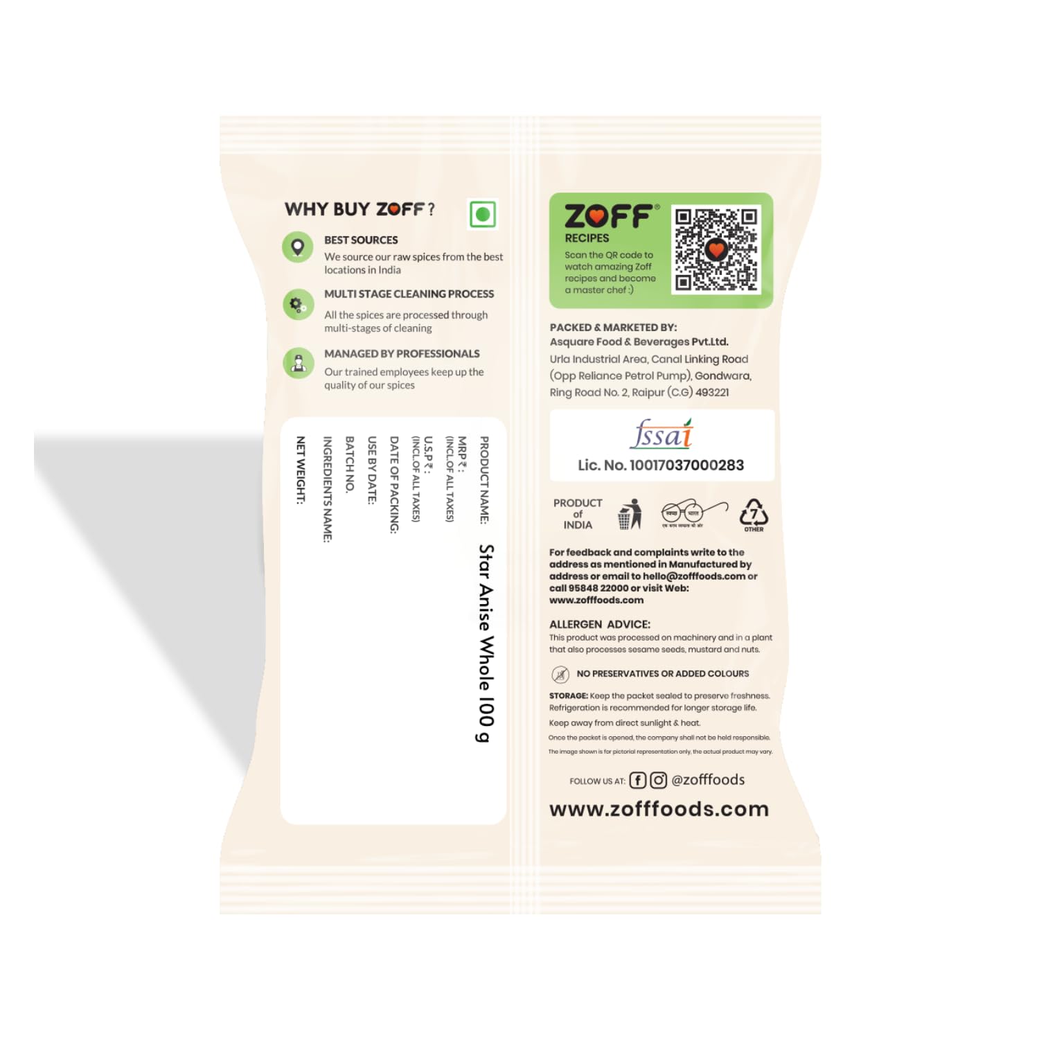 Zoff Star Anise Whole | Premium Star Anise | Net Weight 100g