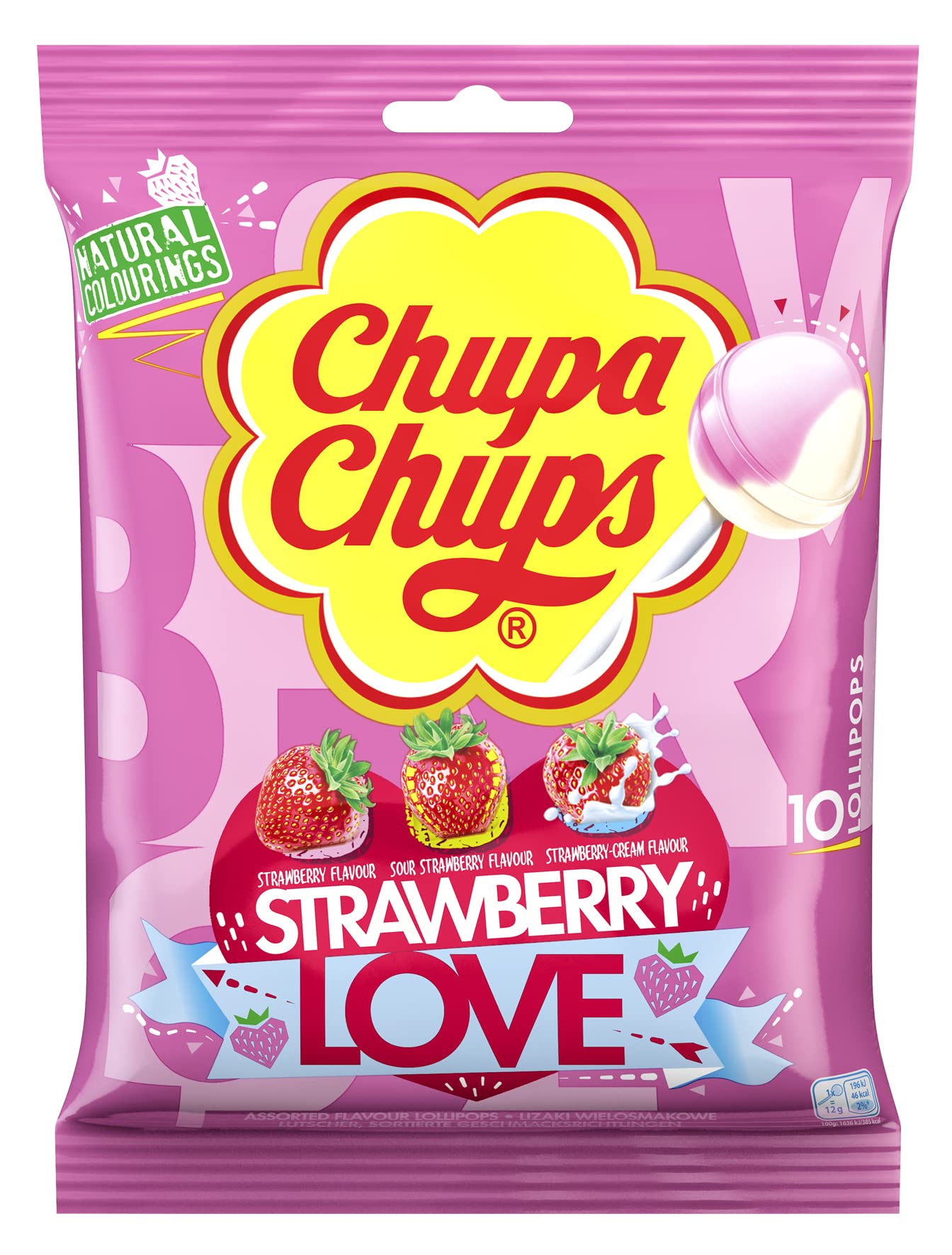 Chupa Chups Strawberry Love Flavor 10 Lollipops (Strawberry Sour Strawberry & Strawberry Cream)Imported 120g