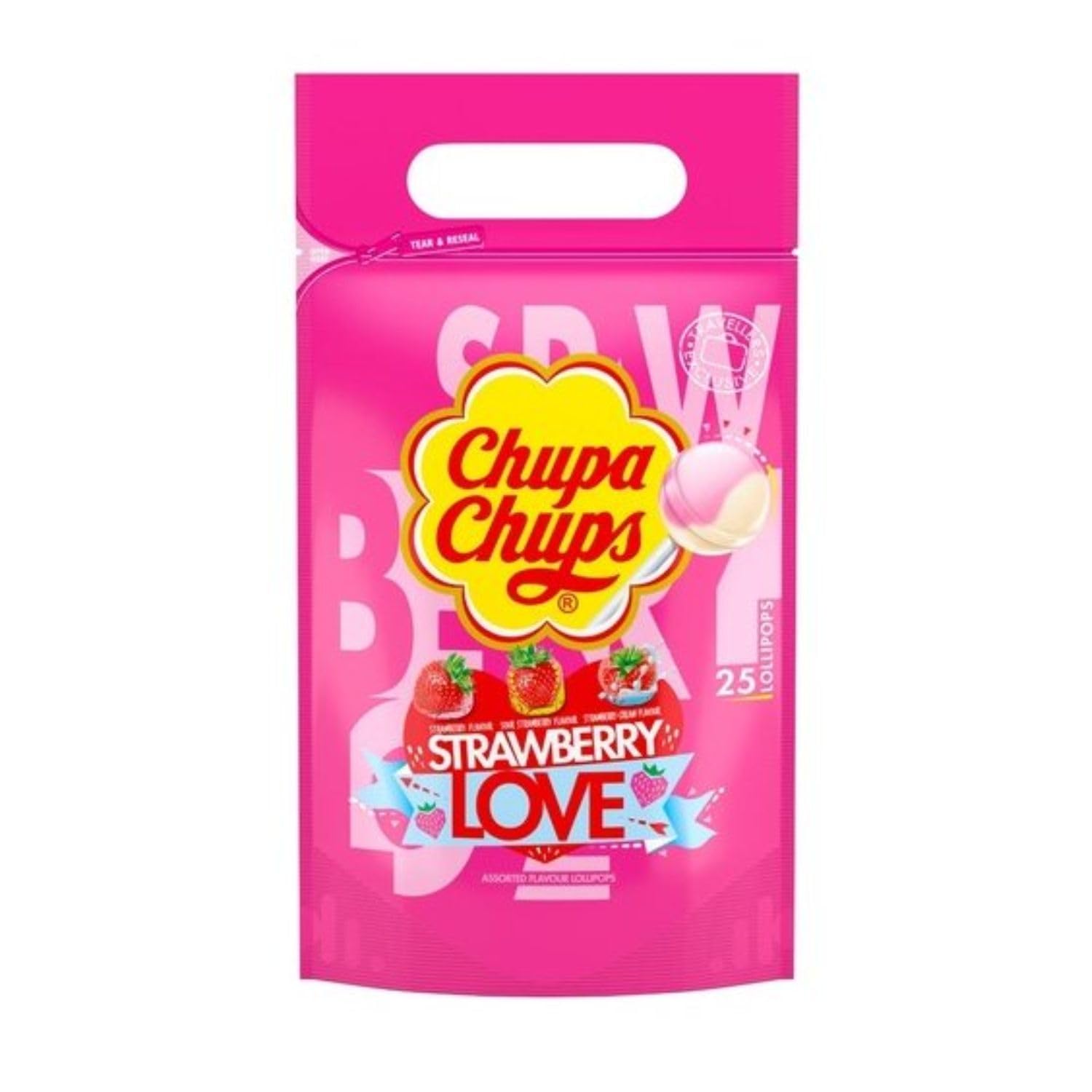 Indulge in the sweet and fruity goodness of Chupa Chups Strawberry Love Pouch Assorted Flavour lollipops. This imported assortment offers a delightful mix of flavors to tantalize your taste buds. The lollipops are individually wrapped and come in a convenient 300g pouch making it easy to share or enjoy on the go