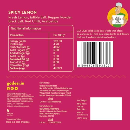 GO DESi Spicy Lemon Candy 200g Fruit Snacks Mouth Freshener Nimbu Bites Dehydrated