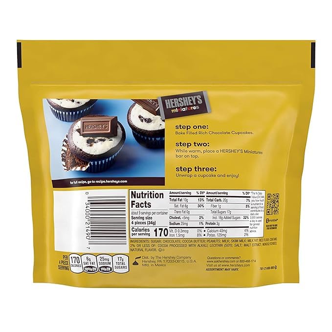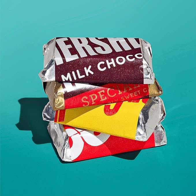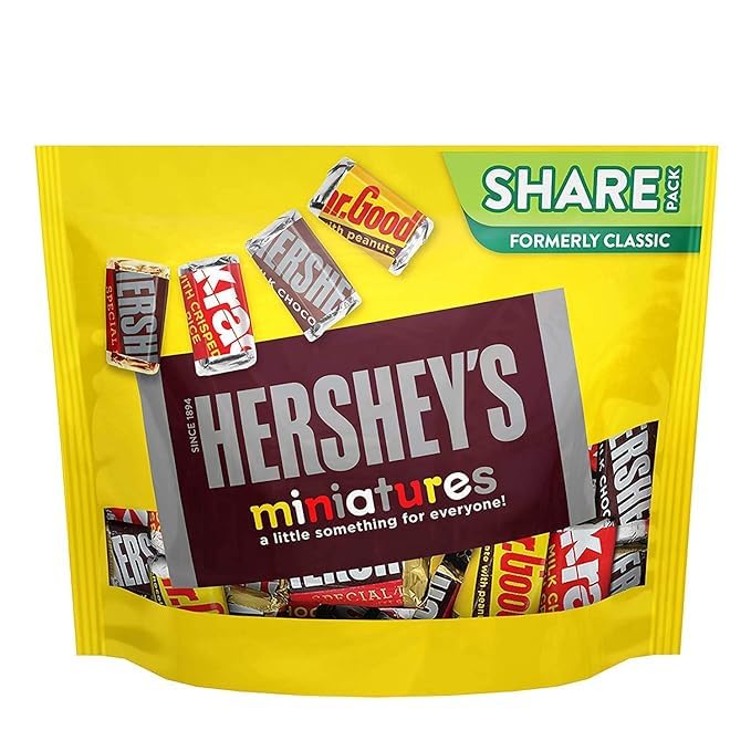 Hershey's Miniatures Assorted Chocolate Candy usually come in a mix of bite-sized chocolate bars each representing a different Hershey's chocolate variety. Some common varieties found in Hershey's Miniatures include Hershey's Milk Chocolate Hershey's Special Dark Chocolate Krackel (crisped rice in milk chocolate) and Mr. Goodbar (milk chocolate with peanuts).