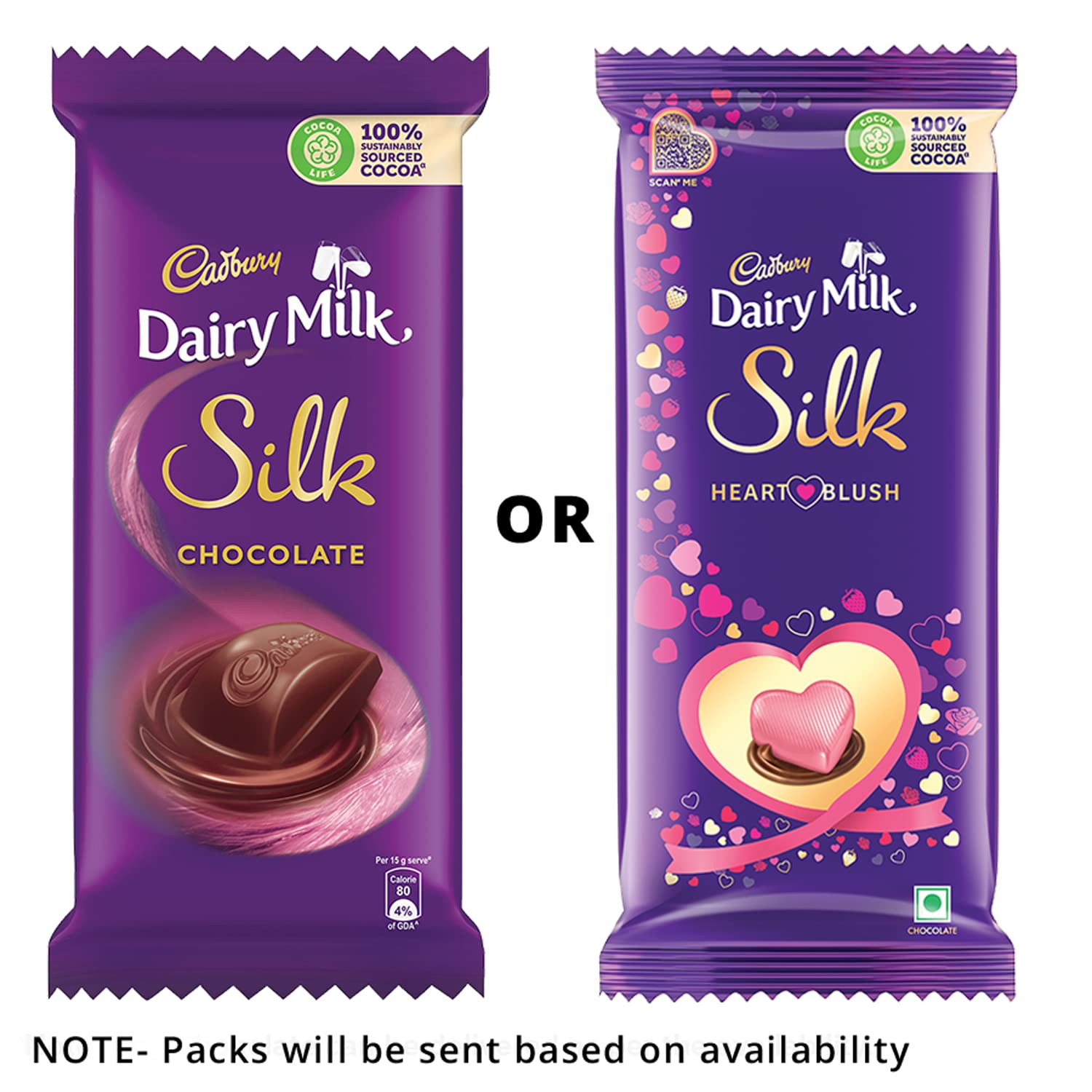 Cadbury Dairy Milk Silk Chocolate Bar 150g (Pack of 3)Cadbury Dairy Milk Silk is all about experiencing in the chocolate's richness and creaminess. The classic taste of Cadbury chocolates offer you a reason to celebrate every small and big occasion of happiness. In short Indulge in the premium chocolate delicacy.Cadbury Silk Dairy Milk - Silk Miniatures Collection 240 gDiscover the gift of Cadbury Silk mignonettes Bitesize bars of dairy milk silk chocolate. Premium Silk Mignonettes offer individually wrapped miniature bars in four unique flavours - Classic Chocolate Sea Salt Butterscotch Almond. This pack contains 24 bites of four flavours. These elegant miniature bites come in a premium pack which makes them a perfect gift pack to share with your friends and family. Silk Mignonettes are packed and delivered with frozen gel packs (reusable) to maintain temperature & quality during transit.