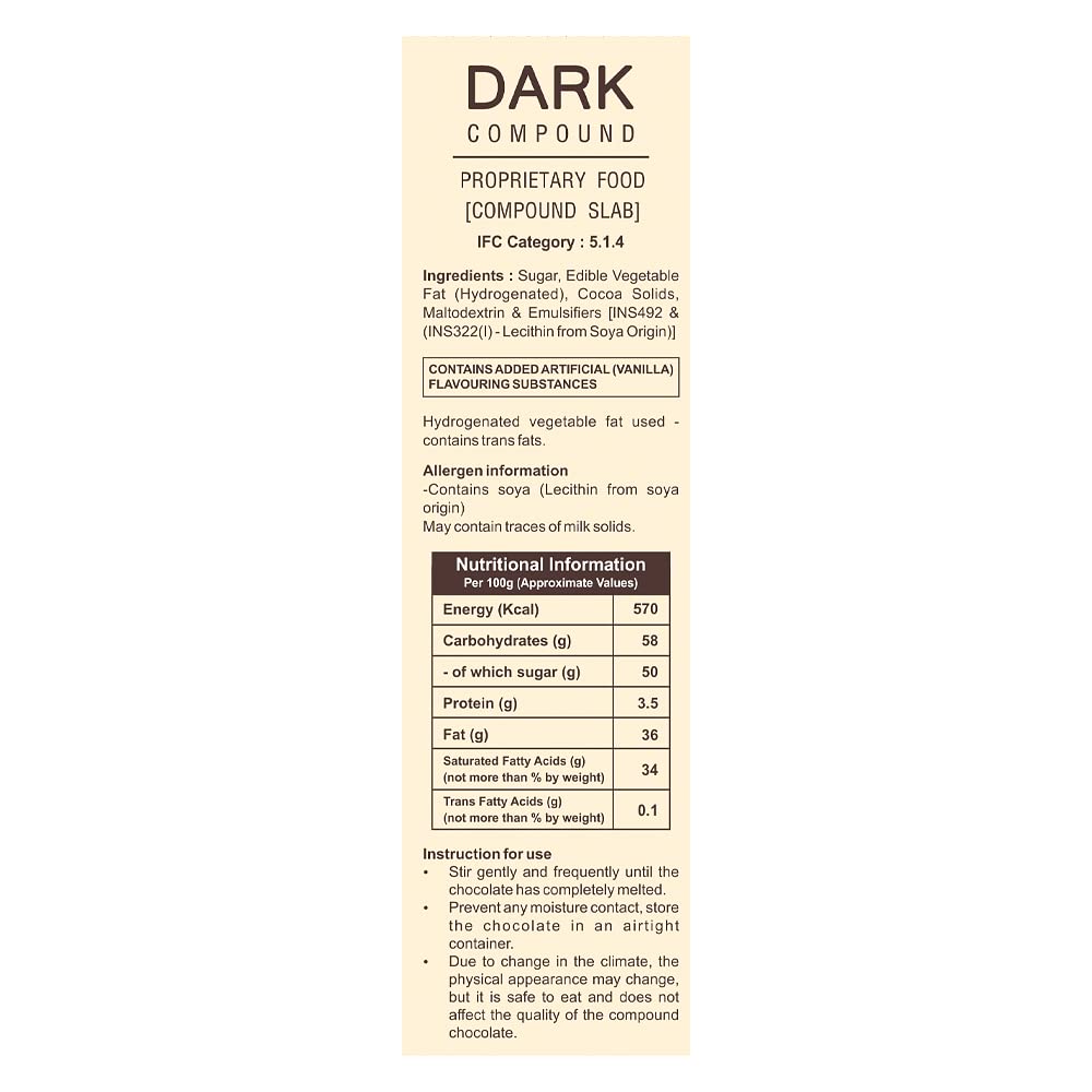 this chocolate compound is best chocolate for making chocolate garnish choco chips sprinkles garnache chocolava cupcakes mousse topper flowers choclate dripsetc for cake decoration and more variety of desserts.