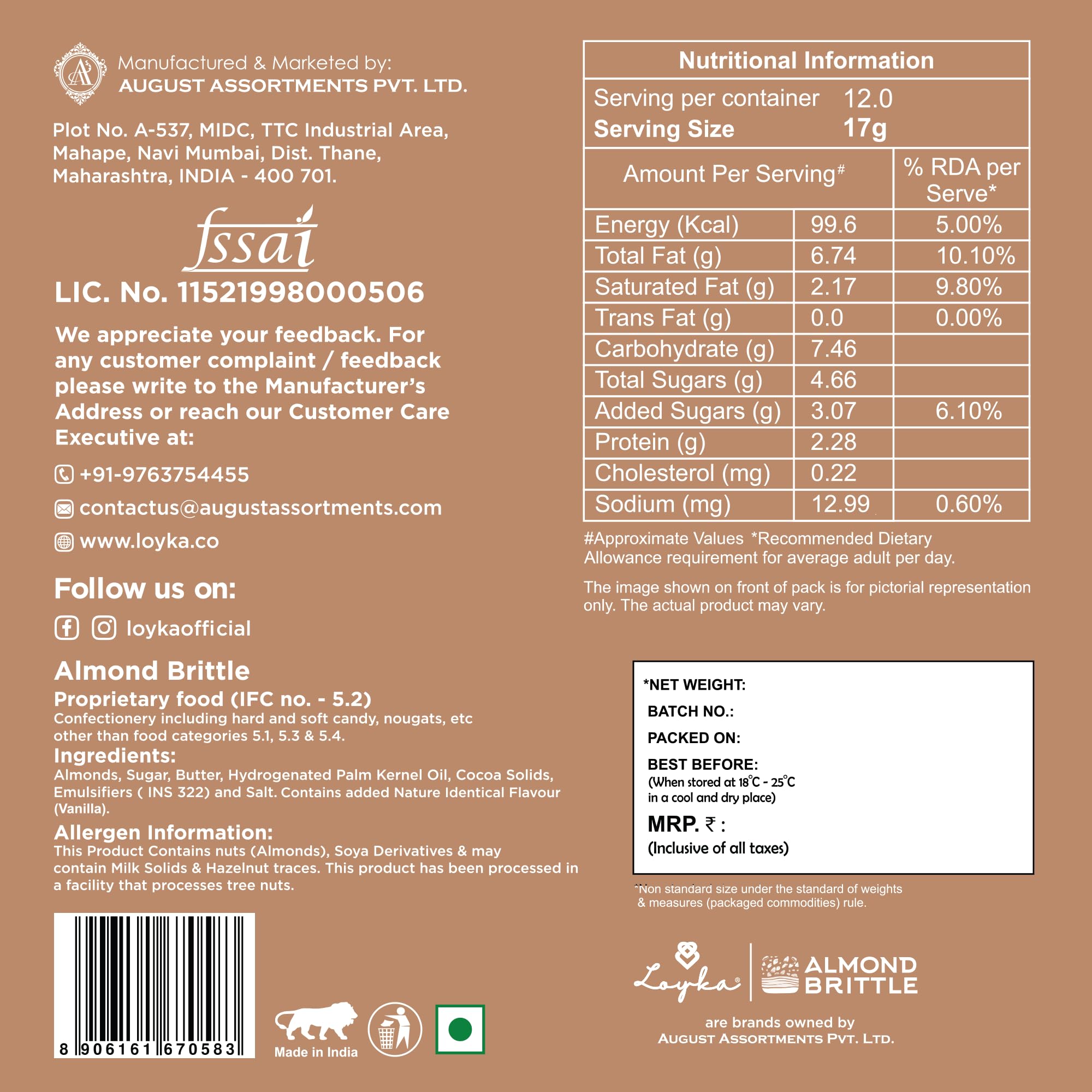 Content: Each box contains 12 delicious pieces of Almond Brittle perfect for sharing with friends and family or enjoying as a special treat for yourself. (204 gram pack)