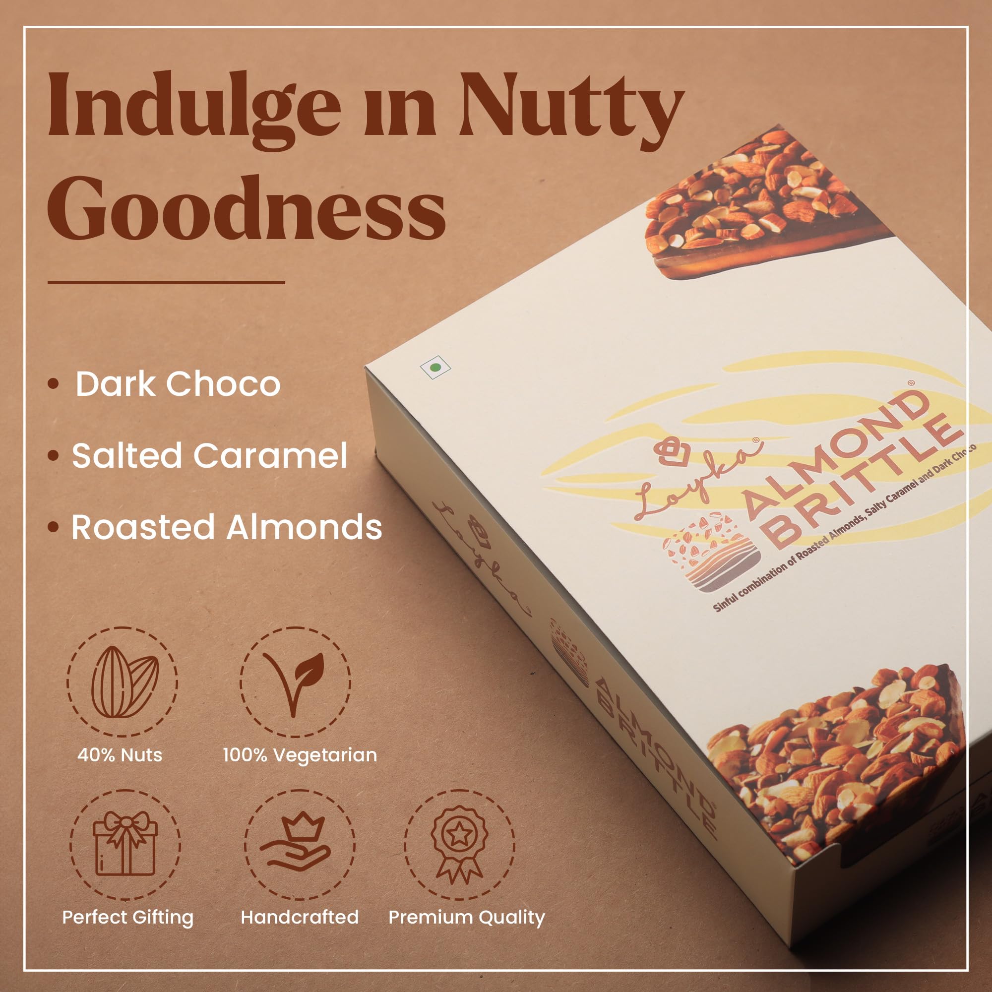 Loyka Almond Brittle Classic Choco Box - 12 pcs | Premium Chocolate Gift Hamper |Choco & Nut Dryfruit Delicacy |Roasted California Almonds (40%) Dark Choco & Salted Caramel | Any-time snack 204 gram