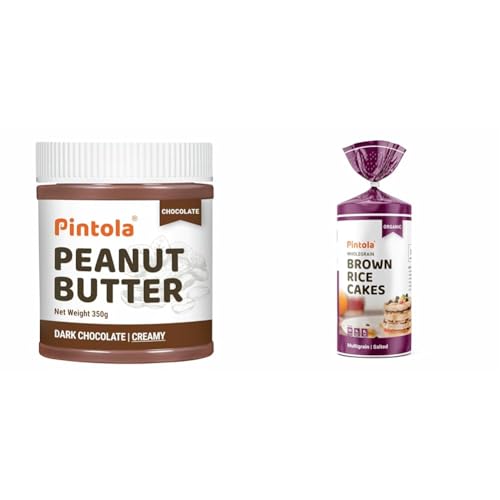 Pintola Peanut Butter Chocolate Flavour Creamy 350g - 18.6g Protein & 5.2g Dietary Fiber Made with Premium Roasted Nuts & Cocoa Gluten Free Zero Cholesterol & Trans Fat Vit E & B3 Dark ChocolatePintola Dark Chocolate Peanut Butter is the best chocolate flavored peanut butter in India! It is irresistibly delicious and has an utterly smooth texture. No artificial colorings or harmful preservatives are used in this product. All PINTOLA® Products are made up of the finest grade fresh and nutritious ingredients from an ISO 22000 Certified and FSSAI approved Factory. We manufacture Indiaâs favorite Nut Butters daily so that you get the fresh product every time you buy one.Pintola Organic Wholegrain Brown Rice Cakes - Multigrain (Salted) (Pack of 1) 130 g | All Natural | 9 Wholegrain | No Cholesterol | Low Fat | Soy and Yeast Free | Only 30 Calories Per CakeWhy settle for bread when you can have something even better? Pintola's Multigrain Rice Cake is a healthier and more filling alternative that'll help you stay active and maintain good health. Low on calorie it is baked with 9 wholegrains and is the perfect mini-snack to tide you over until your next meal. So why wait? Head over to Amazon and grab a pack today!
