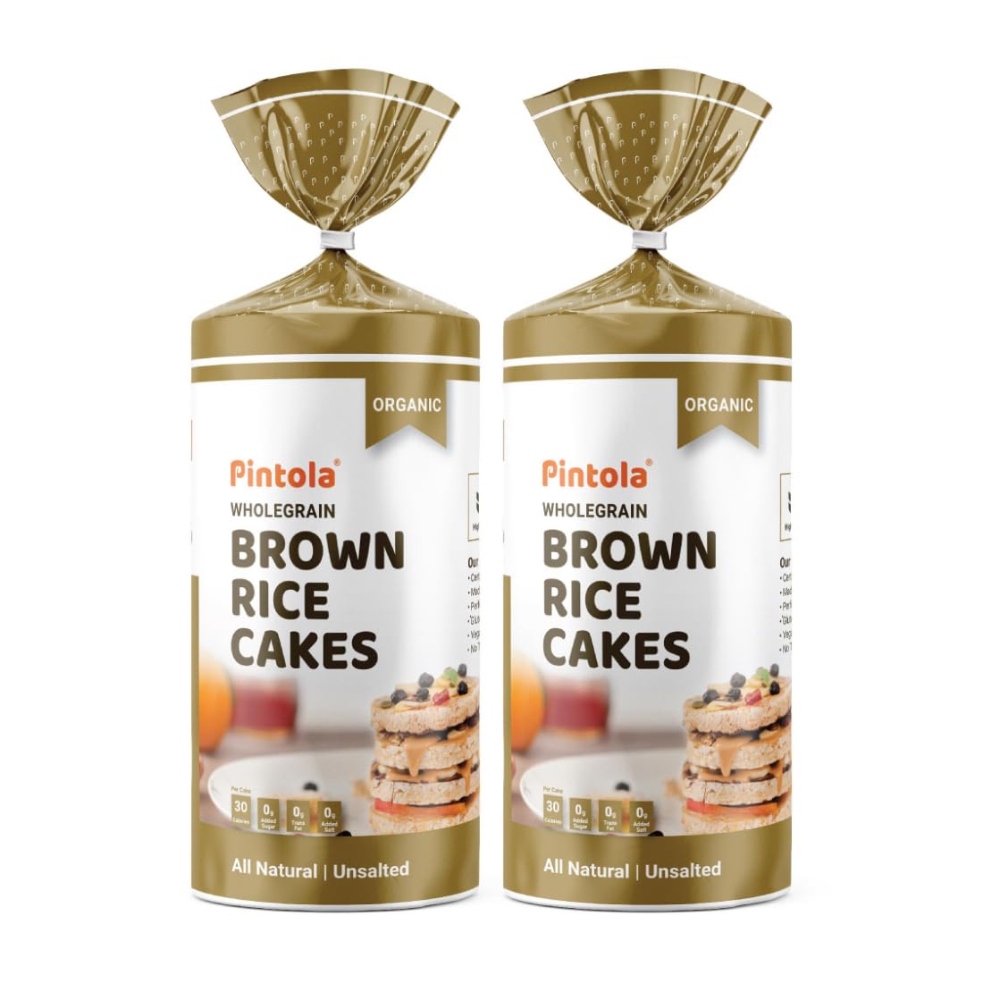 HomeGroceryFlavorsNut & Seed ButterPINTOLA Organic Brown Rice Cake - All Natural (Unsalted, Pack of 2) (130 g x 2), Gluten-Free Snack for Weight Loss, Made with 9 Wholegrains, Soy and Yeast-Free, Taste Best With Peanut Butter, Low Fat, 30 calorie per cake