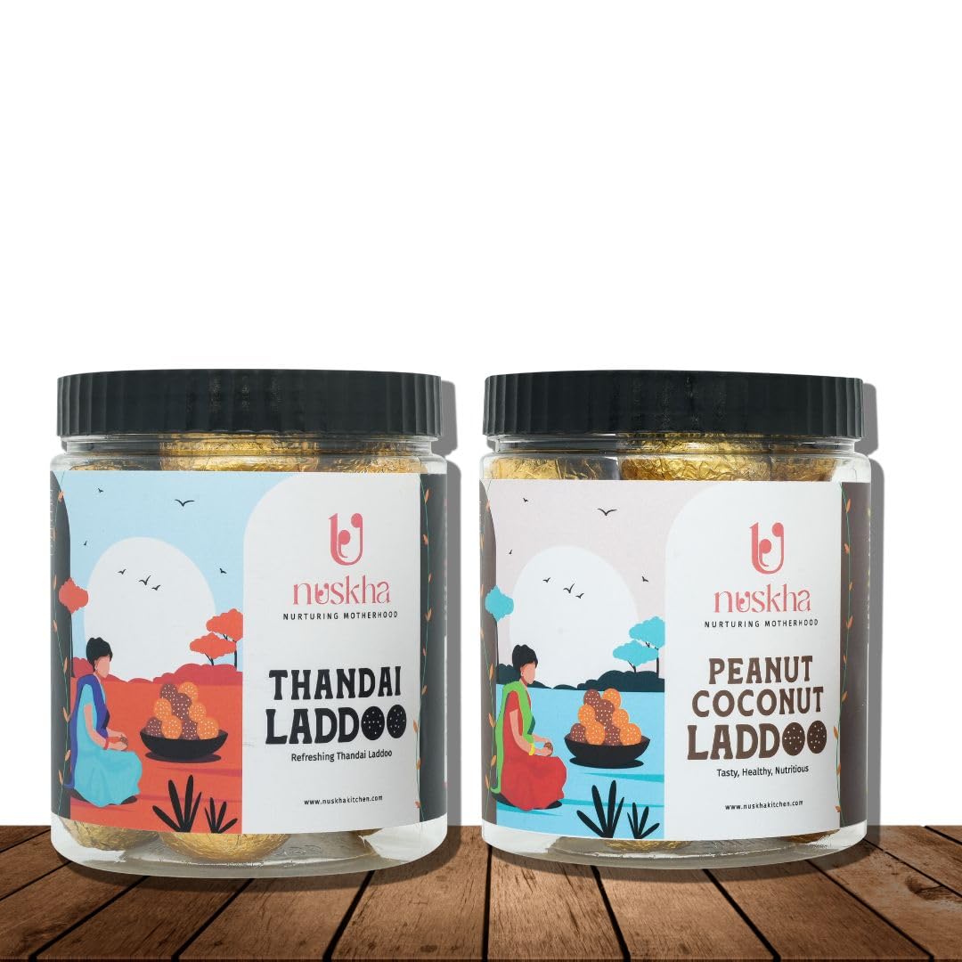 Discover Nuskha's delightful combo of Thandai and Coconut Laddu the perfect blend of taste and nutrition. Our Thandai Laddu is crafted with premium nuts seeds and aromatic spices offering a refreshing and energizing treat ideal for any occasion. Paired with our Coconut Laddu made from fresh coconut and natural sweeteners this combo provides a burst of flavor and health benefits. Both Thandai Laddu and Coconut Laddu are rich in essential nutrients supporting overall wellness and vitality. Enjoy the unique flavors of Thandai Laddu known to enhance digestion and boost immunity while indulging in the deliciously sweet and satisfying Coconut Laddu packed with fiber and antioxidants. Free from artificial additives and preservatives this combo is a natural and wholesome choice for your snacking needs. Experience the perfect fusion of tradition and taste with Nuskha's Thandai Laddu and Coconut Laddu combo.