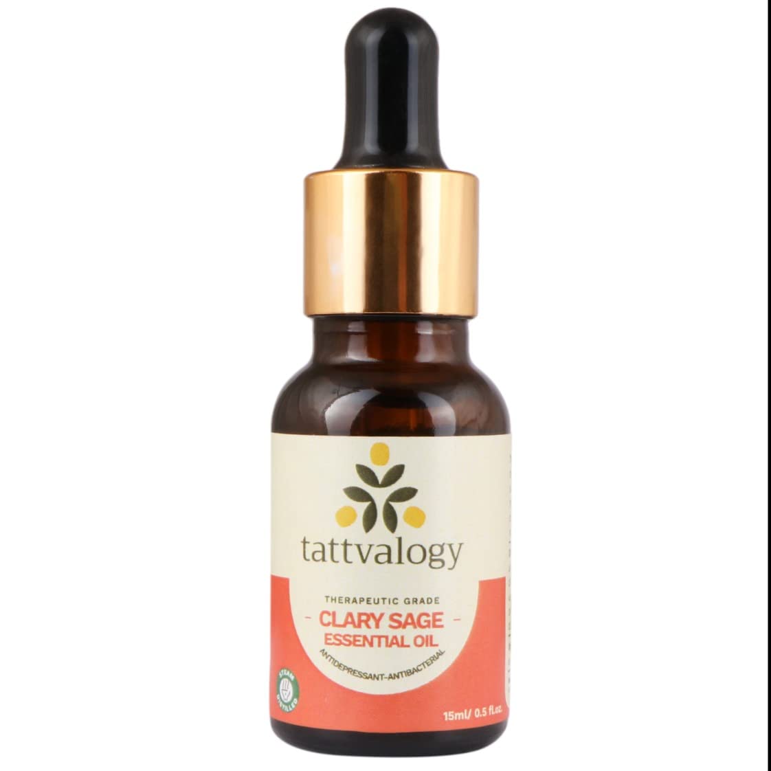 Tattvalogy Clary Sage Essential Oil | Salvia sclarea | 100% Pure Therapeutic Grade Oil For Aromatherapy | For Stress Relief & Mood Balance | For Healthy Skin Body & Mind | In Glass Bottle - 15 ML