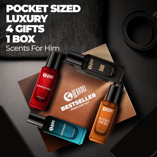 Beardo Perfumes Giftset For Men (Pack of 4 x 20ml) Whisky Smoke, Godfather, Tsunami and Black Musk | Long Lasting Perfume Musk & Woody Fresh Fragrance | Valentines day gift for husband | Gift for boyfriend | Gift for Men| Anniversay gift | Couple gift