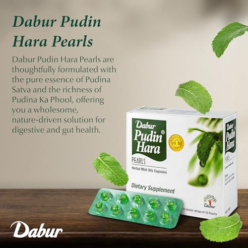 Dabur Pudin Hara Pearls - Daily Digestive Care Supplements for Men and Women, Helps Abate Symptoms of Bloating, Acidity, Flatulence and Indigestion for Digestive and Gut Health, 10 count (Pack of 1)