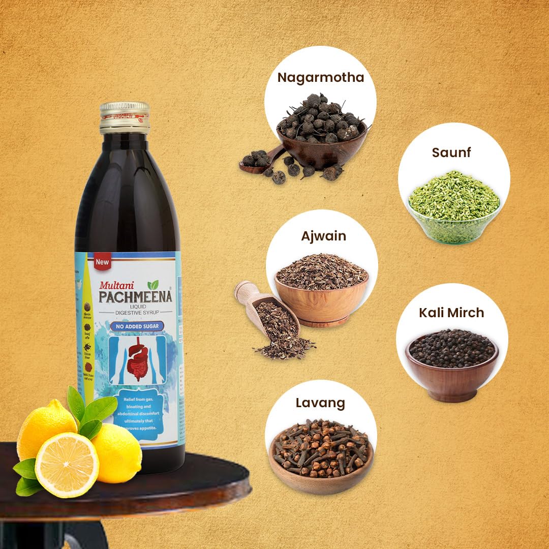 Multani Pachmeena Liquid Sugar Free (No Added Sugar) ||Ayurvedic Products For Better Digestion | Relief From Gas Bloating Abdominal Discomfort | Improves Appetite 100% Natural & Ayurvedic | 300 Ml