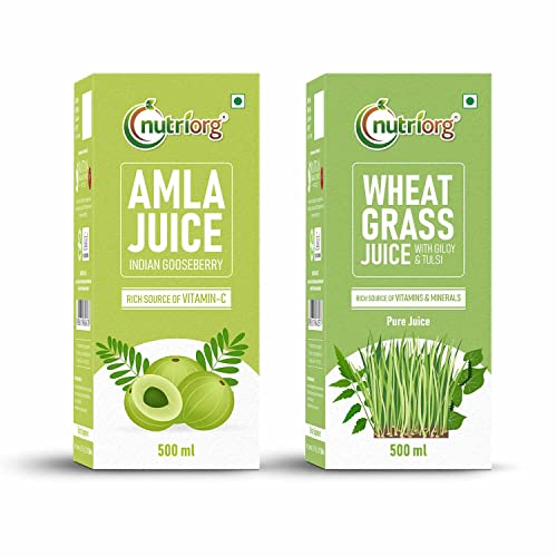 Nutriorg Amla & Wheat Grass Juice - 500 ml | Company Own Farmlands | Immunity Booster | Detoxification