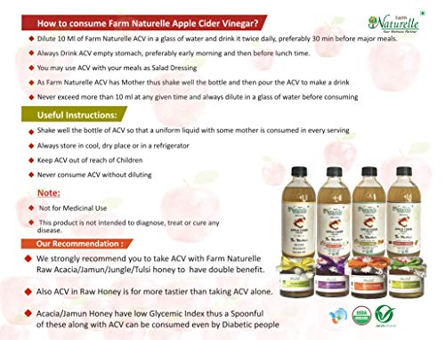 Farm Naturelle Organic Apple Cider Vinegar with Mother and Apple Cider Infused Ginger and Garlic (500 ml x 2 ) Pack of 2