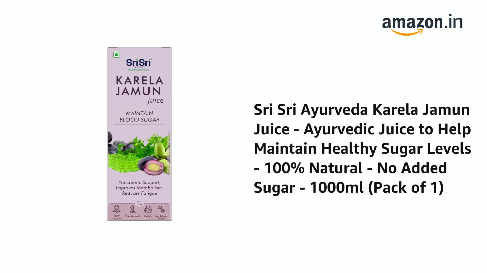 Sri Sri Ayurveda Karela Jamun Juice - Ayurvedic Juice to Help Maintain Healthy Sugar Levels - 100% Natural - No Added Sugar - 1000ml (Pack of 1)