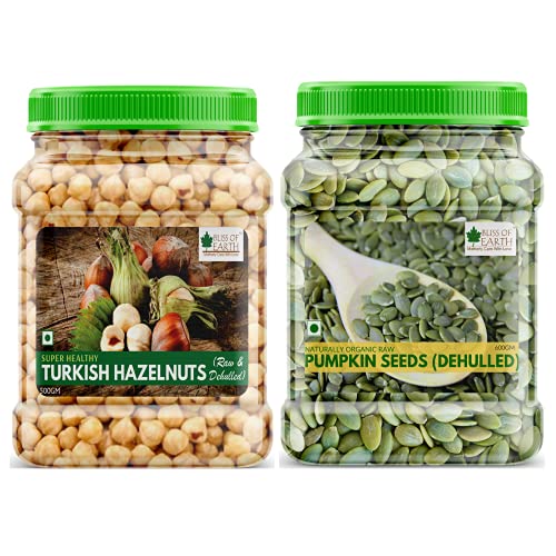Bliss of Earth Turkish Hazelnuts are powder packed with nutrients including vitamins minerals anti-oxidants and healthy fats. Hazelnuts can be consumed as a raw snack roasted or added to baked dishes such as cake chocolates & shakes. All in all hazelnuts are an excellent and delicious source of nutrients for a healthy diet. Hazelnuts offers various health benefits including regulating blood pressure Direction for use: Consume raw roasted or salted. Add to your cake chocolates or shakes. Ingredients: Raw Dehulled Hazelnuts Country of Origin: Turkey Bliss of Earth Naturally Organic Pumpkin Seeds are dehulled and are one of the healthiest superfood. They are loaded with nutrients that can provide a substantial amount of healthy fats magnesium and zinc. Incorporating these seeds in your diet improves heart health & prostate health.