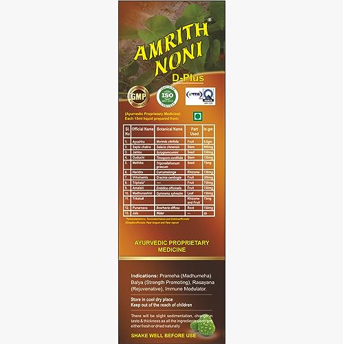 Amrith Noni D plus liquid 500ml | Morinda, Jamun, Guduchi, Amla, Haridra & more | Pack of 1(500 ML)