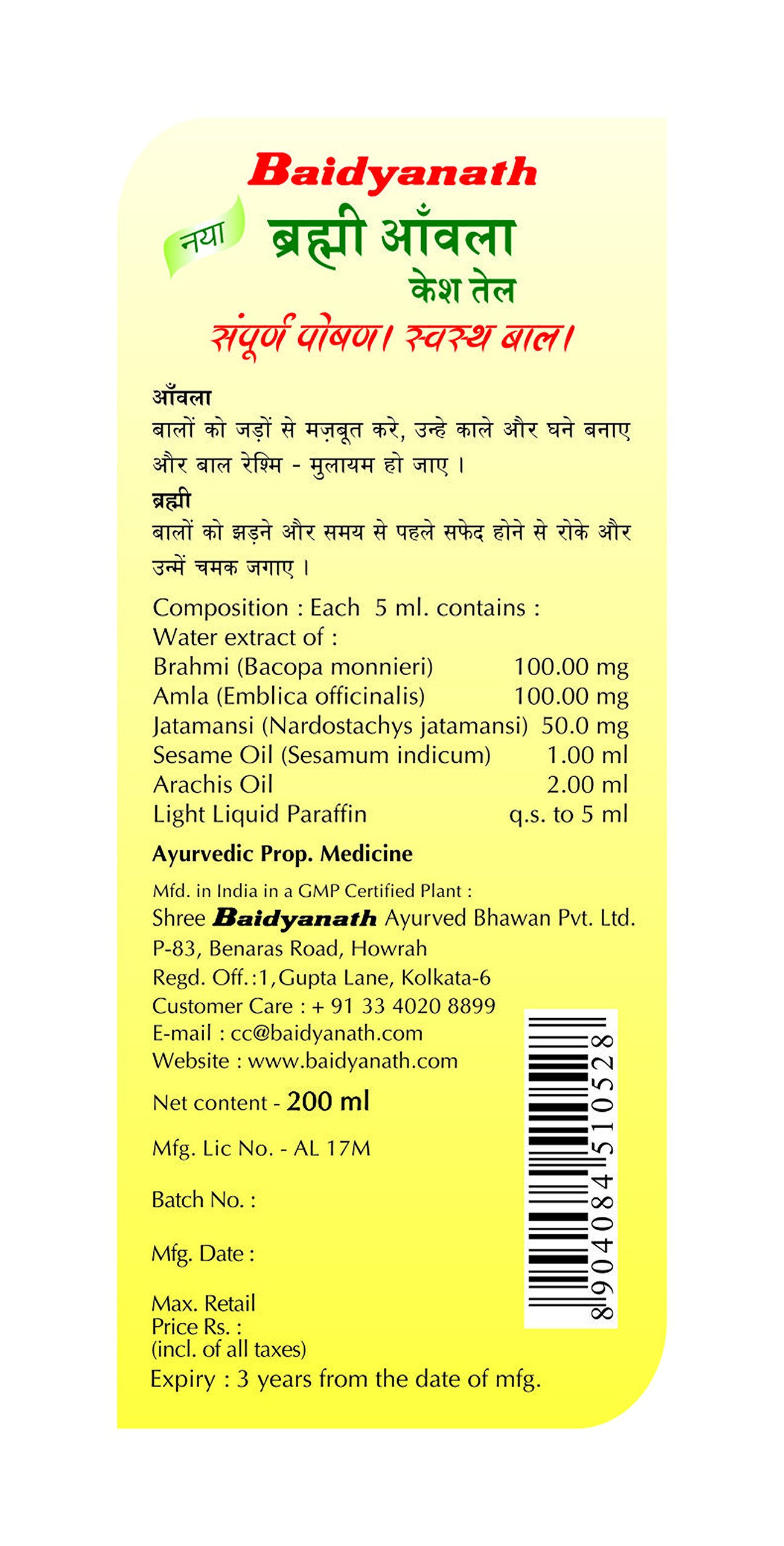 Baidyanath Mahabhringraj Tel (Original) | Hairfall Control | Ayurvedic Medicated Hair Oil | 4X More Effective | For All Hair Types (Male & Female) - 200mlBaidyanath Mahabhringraj Tel is considered really effective for promotoing overall hair health. Made up of best quality herbs Mahabhringraj tel not only helps the hair look shiny and lustrous but nourishes it from within. Mahabhringraj oil is also know to relieve pressure from the multiple pressure points present in the scalps. Mahabhringraj Oil considered best for advanced hair care contains hand plucked hair freindly ayurvedic herbs that prevent hair damage.Baidyanath Brahmi Amla Tel - 200 mlBaidyanath Brahmi Amla Hair Oil is a hair tonic for nourishing hair and keep it fresh and moisturized. As the name indicates it is made up of Ayurvedic herbs i.e. Bahmi and Amla and is being used for ancient times. Helps to improve hair health.