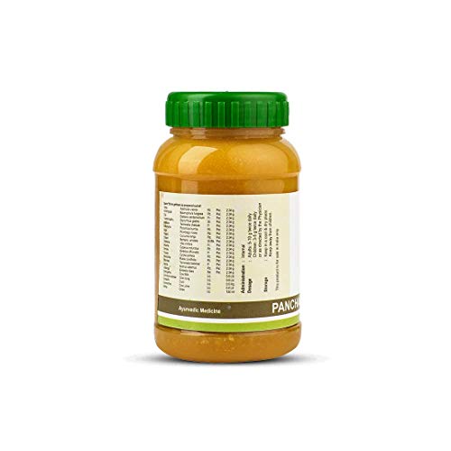 Vasa Adathoda vasica Rt. Pst. 2.34 g Athithippali Balanophora fungosa Rt. Pst. 2.34 g Ela Elettaria cardamomum Fr. Pst. 2.34 g Yashtimadhu Glycyrrhiza glabra St. Pst. 2.34 g Abhaya Terminalia chebula P. Pst. 2.34 g Katurohini Picrorhiza kurroa Rt. Pst. 2.34 g Agni Plumbago rosea Rz. Pst. 2.34 g Rajani Curcuma longa Rz. Pst. 2.34 g Dharvi Berberis aristata St.Bk. Pst. 2.34 g Draksha Vitis vinifera Fr. Pst. 2.34 g Mustha Cyperus rotundus Rt. Pst. 2.34 g Amlaki Emblica officinalis P. Pst. 2.34 g Paada Cyclea peltata Rt. Pst. 2.34 g Manjishta Rubia cordifolia Rt. Pst. 2.34 g Bibhitaki Terminalia belerica P. Pst. 2.34 g Vacha Acorus calamus Rz. Pst. 2.34 g Vidanga Embelia ribes Sd. Pst. 2.34 g Godugdha Cow Milk Lq. 0.6 Ltr. Gomaya svarasa Cow dung Lq. 0.6 Ltr. Godadhi Curd Lq. 0.6 Kg Gomoothra Cow urine Lq. 0.6 Ltr Gritha Ghee Lq. 150 ml.
