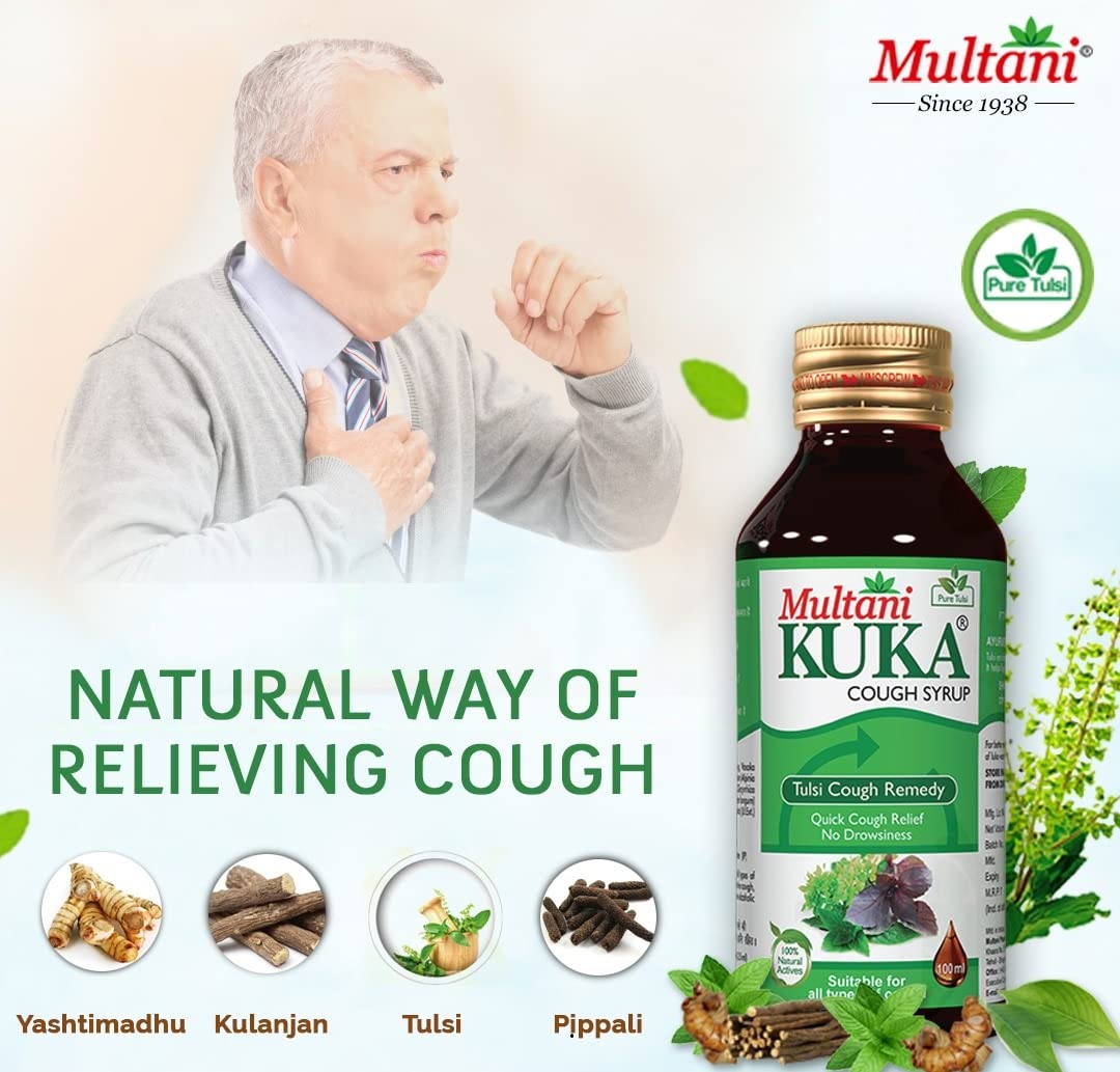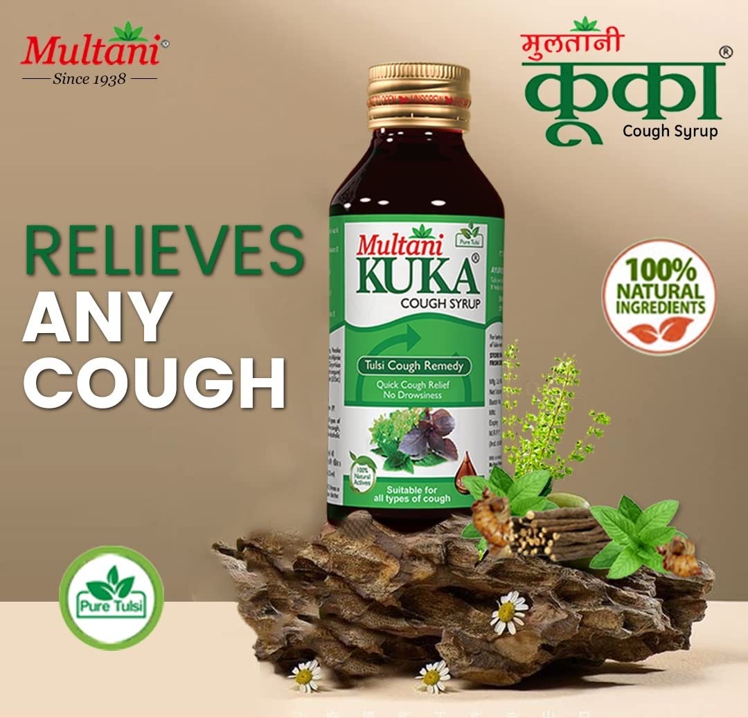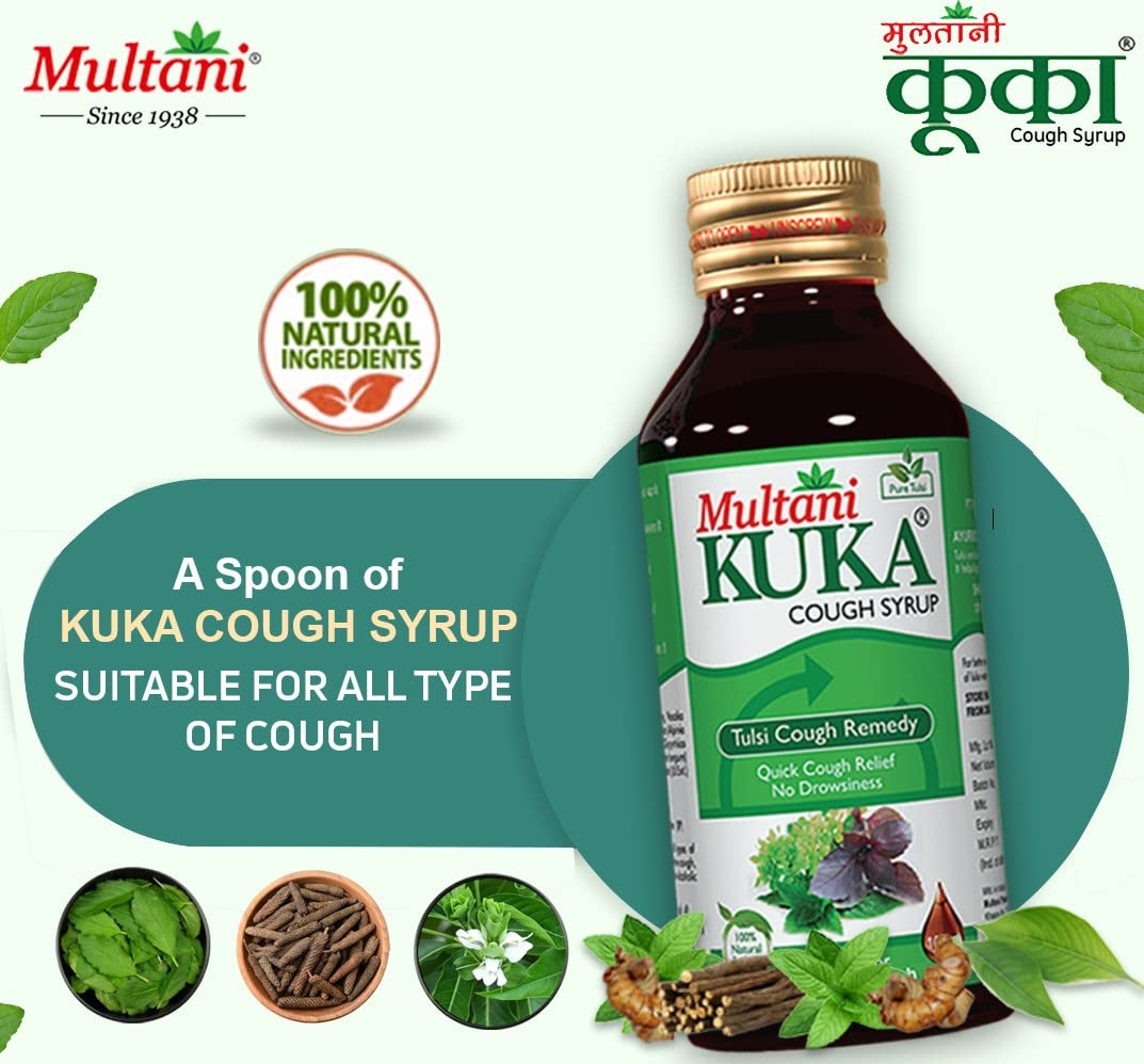 Multani Kuka Cough Syrup | Get Ayurvedic Relief from Throat Issue Chest Congestion All Types Of cough & Cold | Goodness Of Tulsi Pippali Satpudina & Other Herbs | 200 Ml