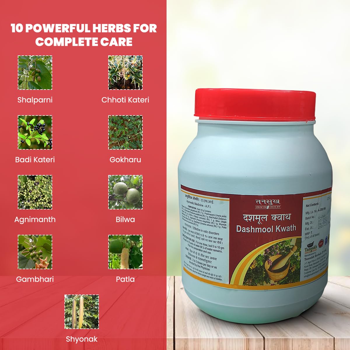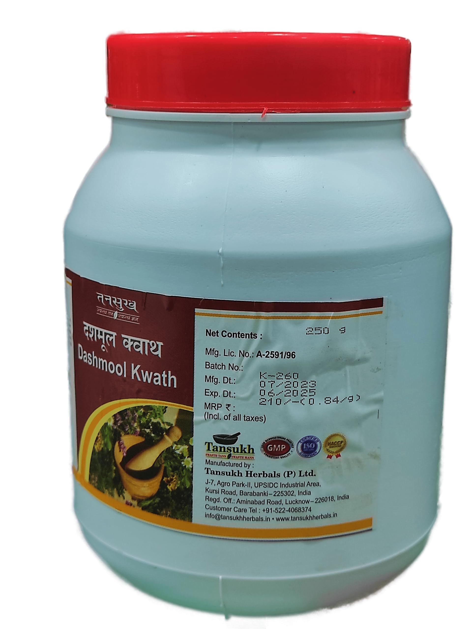 Tansukh Dashmool Kadha - Dashmool Kwath | Pack of 500gram | Container Type - Bottle