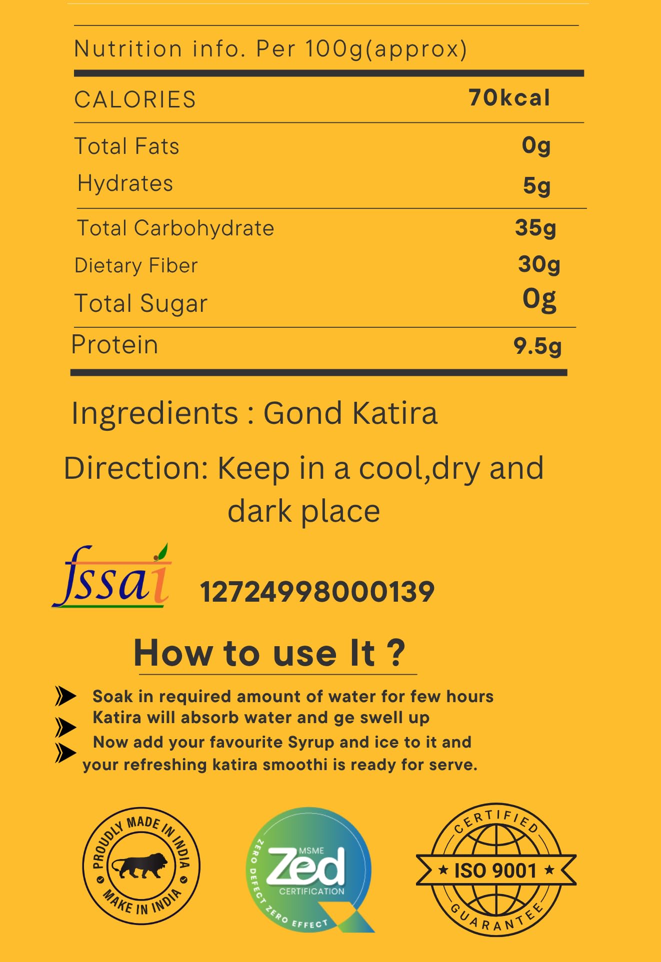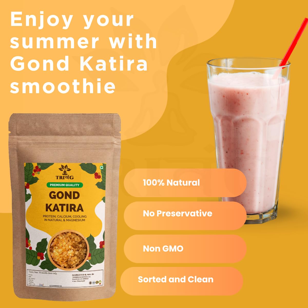 COOLING NATURE: Gond Katira is a natural cooling agent and relieves the body heat. It is used in preparing summer drinks such as smoothies.