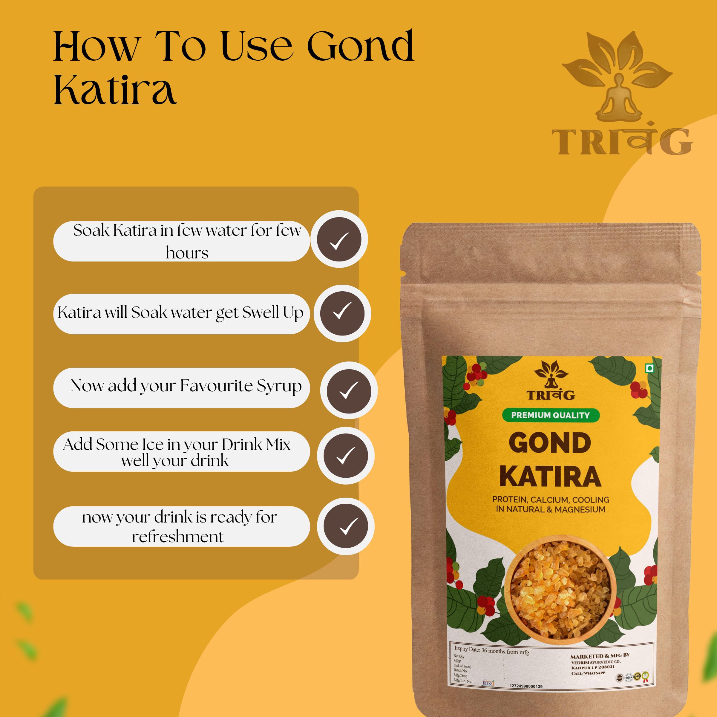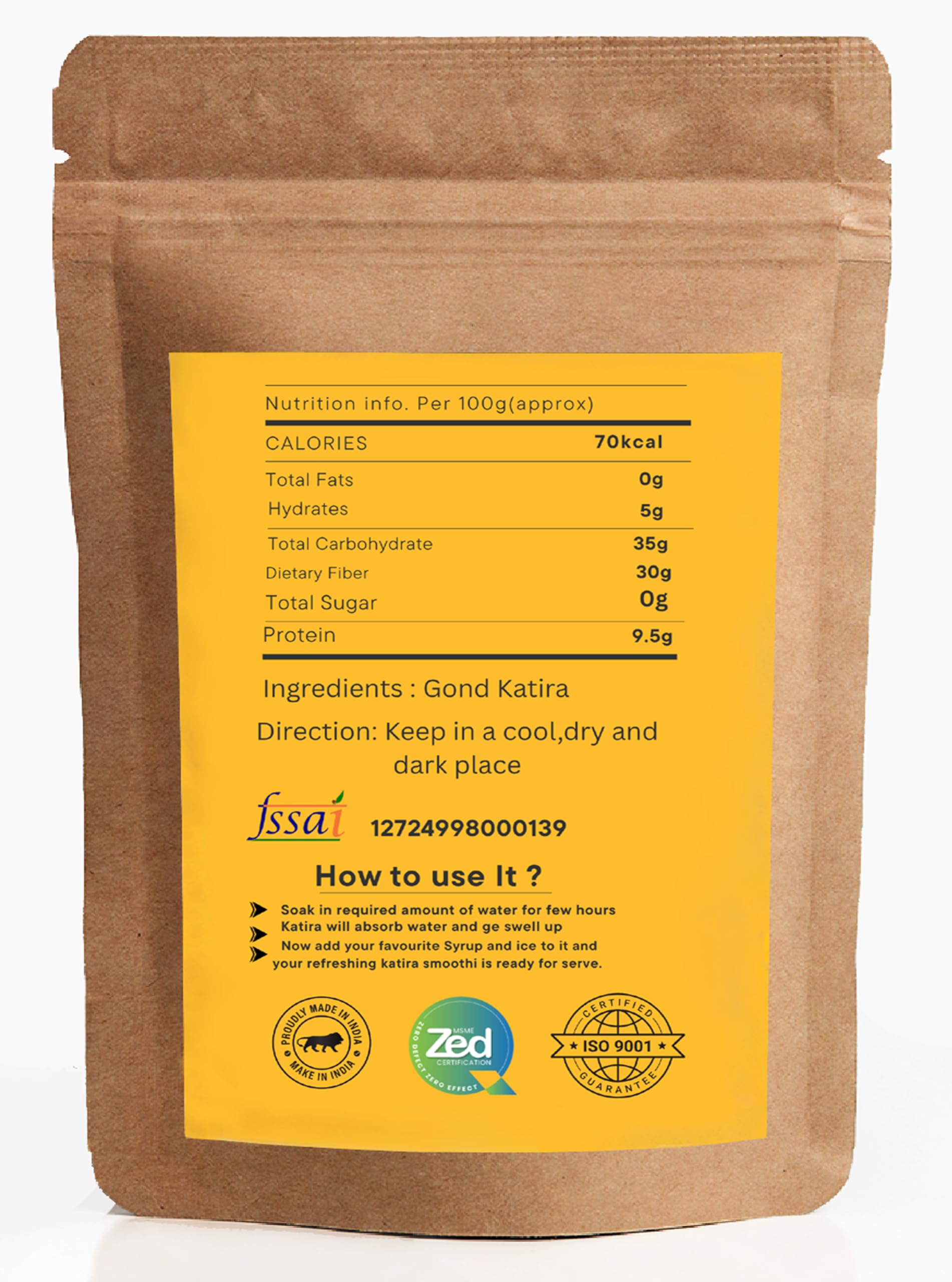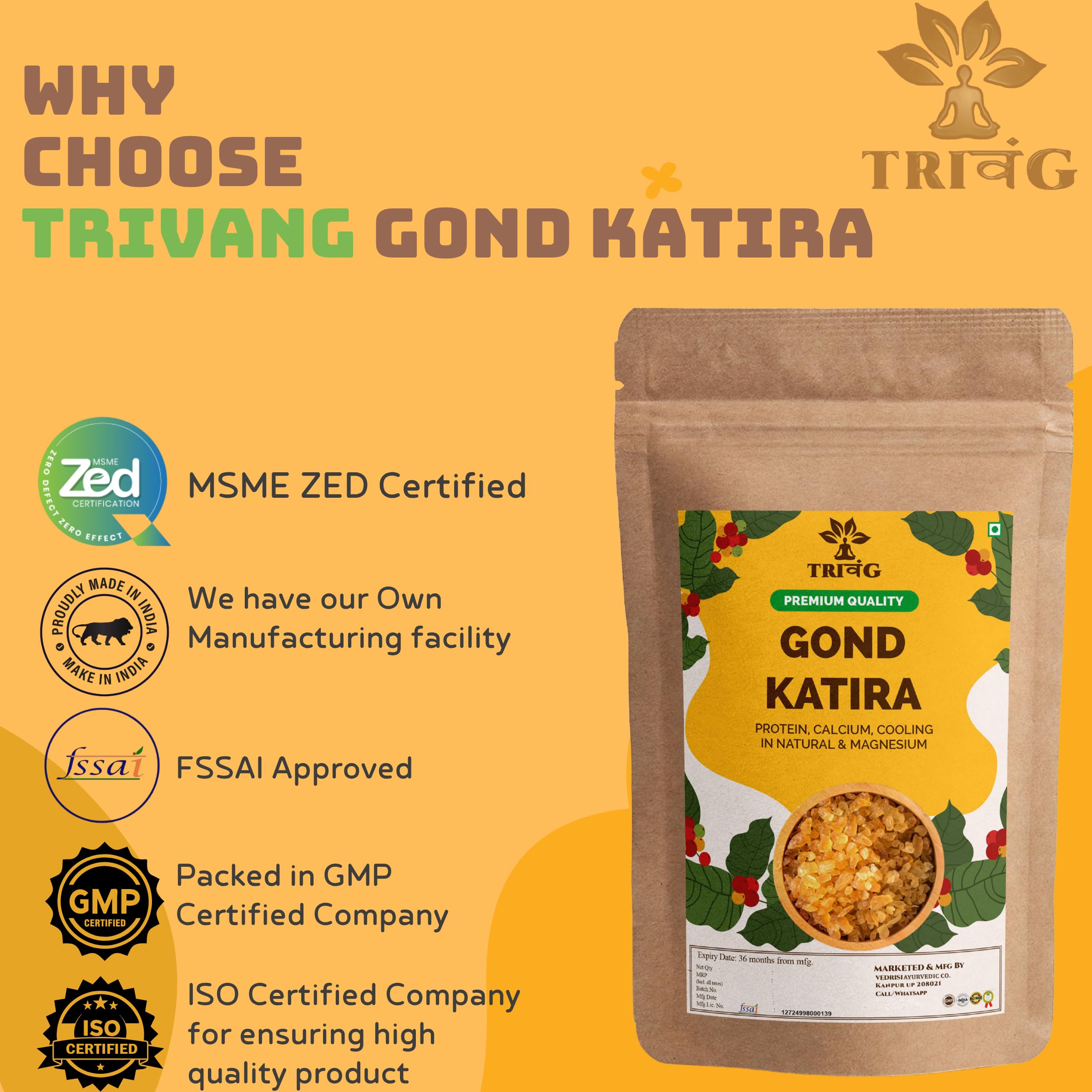 100% NATURAL: Trivang Ayurveda Gond katira is 100% pure and natural. Only high-quality hand-sorted gond katira peices go into the packet.