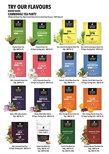 Cambridge Tea Party Mix Assorted Tea Sampler Pack 36 Tea Bags Cleanse Pure Light Green Spa Lemon Lime Lemongrass Calm Chamomile Detox Kahwa Slim Orange Refresh Tulsi Mint 6 tea bags each