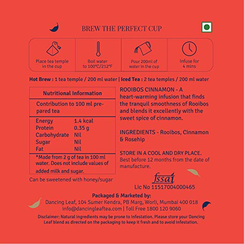 A heart-warming infusion that finds the tranquil smoothness of Rooibos and blends it excellently with the sweet spice of cinnamon making for an uplifting drink. The warm charisma of this symphonic infusion brews to create a sensual and aromatic fragrance.