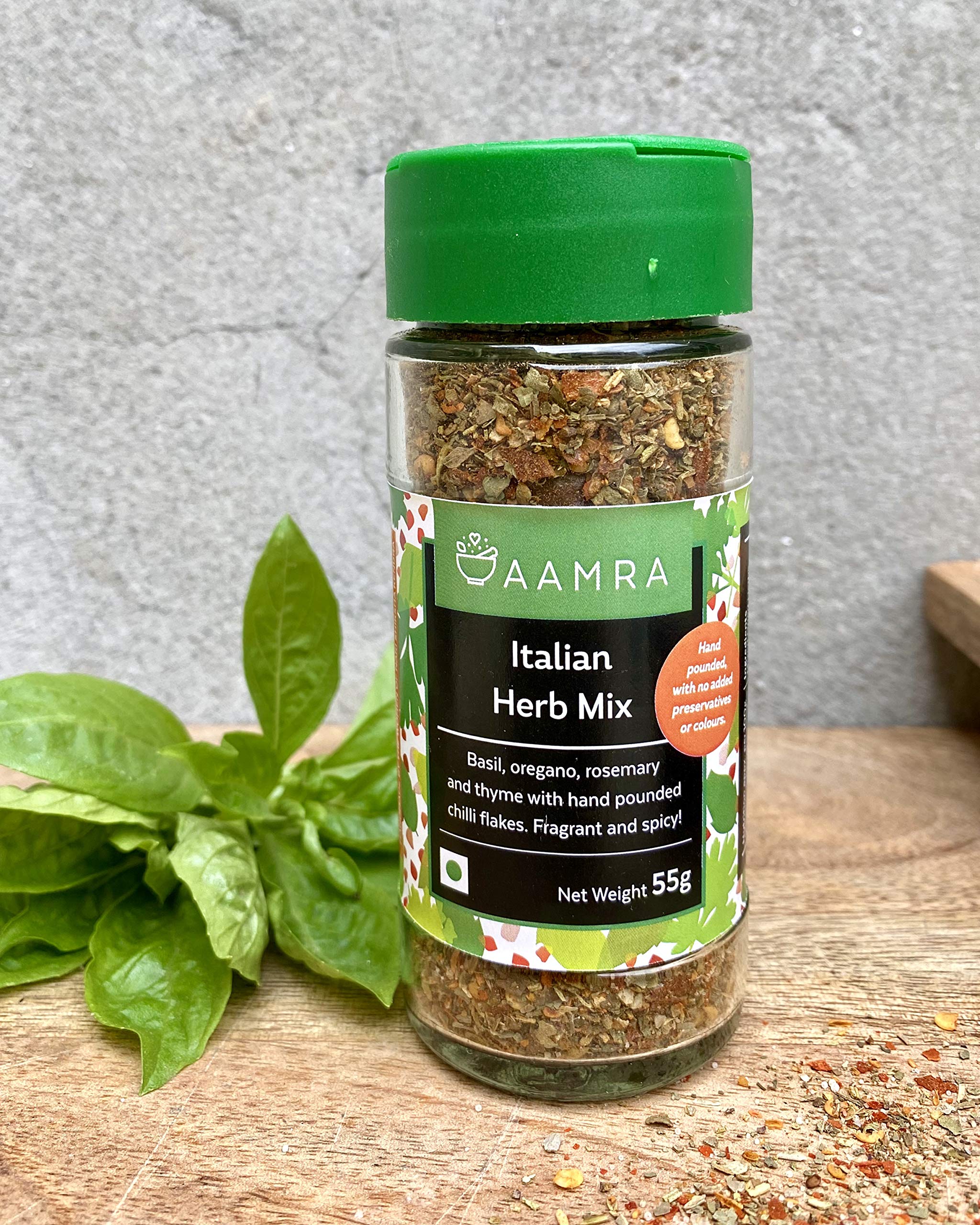 Fragrant & Spicy | A blend of basil oregano rosemary & thyme with chilli flakes. Add to to pizzas pastas or risotto. Drizzle on soups or salads Use as a rub or a marinade. Ingredients- Mixed dried herbs (Oregano basil rosemary thyme) Pink Himalayan Salt Dried Red chilli Shelf life- 12 Months from date of packaging. We take care that products sent out are from the freshest batch. Storage Instructions: Keep in a cool dry place. Net Weight 55g