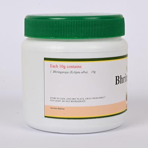 Bhringaraja is the most eminent hair tonic in Ayurveda. Also known as Kesaraja, Kesaranjana and Markava due to its enormous benefits for hair care. Ancient texts have deliniated its cosmetic as well as medicinal value.It is claimed to be the best Rasayana. Its hepatoprotective role is very well established.Botanical name: Eclipta albaFamily: AsteraceaeThe dried whole plant is used to make Bhringaraja powder.Rasa: Katu, TiktaGuna: Ruksha, LaghuVeerya: UshnaVipaka: KatuBalances Kapha and Vata dosha.Agatsya Bhringaja Churna benefits:· Keshya good for hair, enhances hair quality and growth· Useful in eye disorders· Good for teeth, skin· Relieves cough, cold, respiratory infections· Anti inflammatory· Detoxifies blood· Treats conditions of Anaemia, Fever , Indigestion.