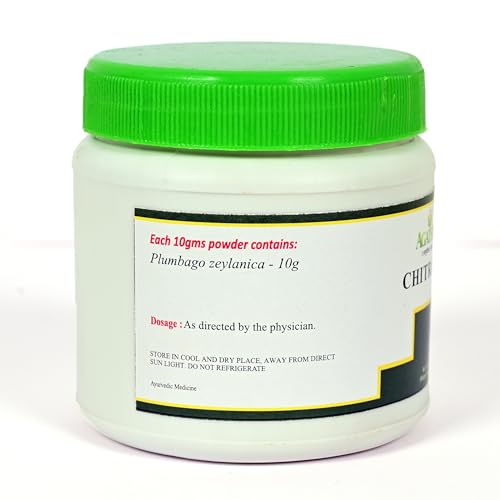 Chitraka is one of the most potent digestive and carminative herb of Ayurveda. Also known as Agni,Vahni due to its action similar to fire. It is one among the Panchakola.The recent researches have revealed its potent anti cancerous properties.Botanical name: Plumbago zeylanica Linn.Family: PlumbaginaceaeThe root bark is used to make Chitraka Churna.Rasa: KatuGuna: Laghu, Ruksha, TikshnaVeerya: UshnaVipaka: KatuBalances Vata and Kapha dosha.Agatsya Chitraka Churna benefits:· Increases appetite· Improves digestive strength· Relieves abdominal colic pain· Treats Cough, Anaemia· Useful in Haemorrhoids· Treats skin disorders and worm infestations.