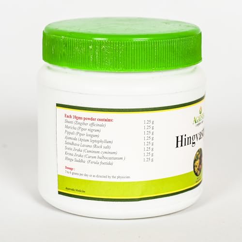 Agatsya Hingvastaka Churna is a polyherbal formulation which consists of Hingu(Asafoetida) as a major element which is a well known Indian culinary ingredient, along with combination of other significant herbs. Being a good appetizer and carminative, it helps to improve digestion and absorption of food. Hence is an effective remedy for anorexia, relieving abdominal distension and flatulence.It helps in maintaining the balance of Vata doshas.Ingredients:· Shunti· Maricha· Pippali· Ajamoda· Saindhava lavana· Shweta Jeeraka· Krishna Jeeraka· Shuddha Hingu
