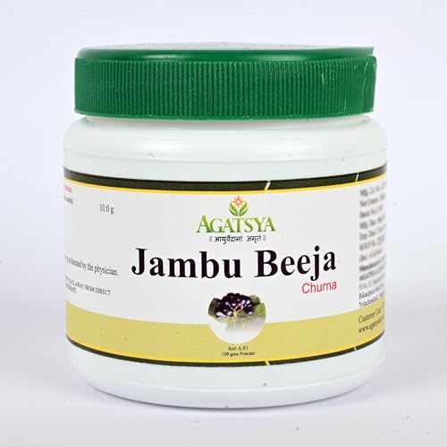 Jambu commonly known as Jamun, is qouted since the Vedic period. It is considered to be one of the earliest remedies for diabetes.Botanical name: Syzium cuminiFamily: MyrtaceaeThe dried seeds are used to make Jambubeeja churna.Rasa: Kashaya, Madhura, AmlaGuna: Laghu,RukshaVeerya: SitaVipaka: KatuBalances Kapha and Pitta dosha.Agatsya Jambubeeja Churna benefits:· Helps to lower the level of blood sugar· Treats Vomitting and Diarrhoea· Checks bleeding disorders· Accelerates quick wound healing