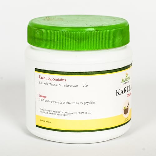 Karela commonly known as Bitter gourd is very significant in Ayurveda given its numerous health benefits. It is a potent antidiabetic drug. Owing to its antimicrobial properties Karela treats various infections.Botanical name: Momordica charantia Linn.Family: CucurbitaceaeThe dried fruit is used to make powder.Rasa: Tikta, KatuGuna: Laghu, RukshaVeerya: Sheeta / UshnaVipaka: KatuBalances Kapha and Pitta dosha.Agatsya Karela Churna benefits:· Treats anorexia· Checks bleeding disorders· Useful in treating Anemia· Accelerates quick wound healing· Treats worm infestation· Highly effective in Diabetes and Urinary tract disorders· Treats a wide array of skin disorders, allergies· Useful in treating cough, cold, chronic respiratory disorders and fever.