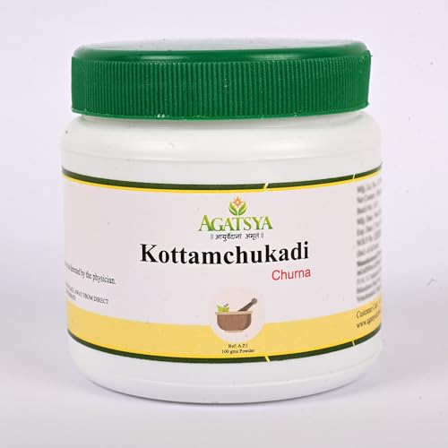 Agatsya Kottamchukkadi Churna is a polyherbal preparation utilized externally to relieve pain and swelling. It supports treatment of various joint pains involved in diseases such as Arthritis.It is mixed along with a suitable medium and applied over the affected area.Ingredients:· Kushta· Shunti· Vacha· Shigru· Lashuna· Himsra· Devadaru· Sarshapa· Rasna· Chinchapatra