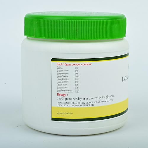 Agatsya Lavana Bhaskara Churna is a digestive aid, it is traditionally used in the treatment of abdominal bloating, gastritis, abdominal pain, indigestion, flatulence, disorders of spleen , chronic constipation, haemorrhoids and fistula . Also it is used in the management of respiratory conditions such as cough and cold. This Churna balances the vitiated Vata and Kapha doshas.