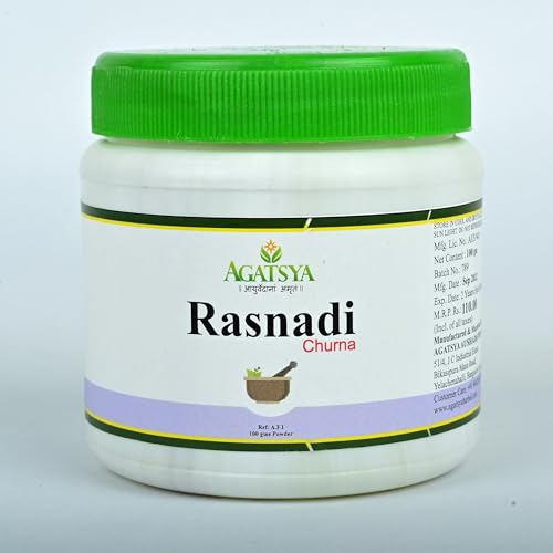 Agatsya Rasnadi Churna is a polyherbal formulation which is used extensively in Ayurveda. It is mixed with certain medium and used for external application. Rasnadi Churna has both preventive as well as curative effect. Therapeutically it relieves headache, dizziness, sinusitis, cough, muscular pains and Rheumatism. Traditionally it is utlilized as a routine regime on the wet scalp so as to prevent infections.